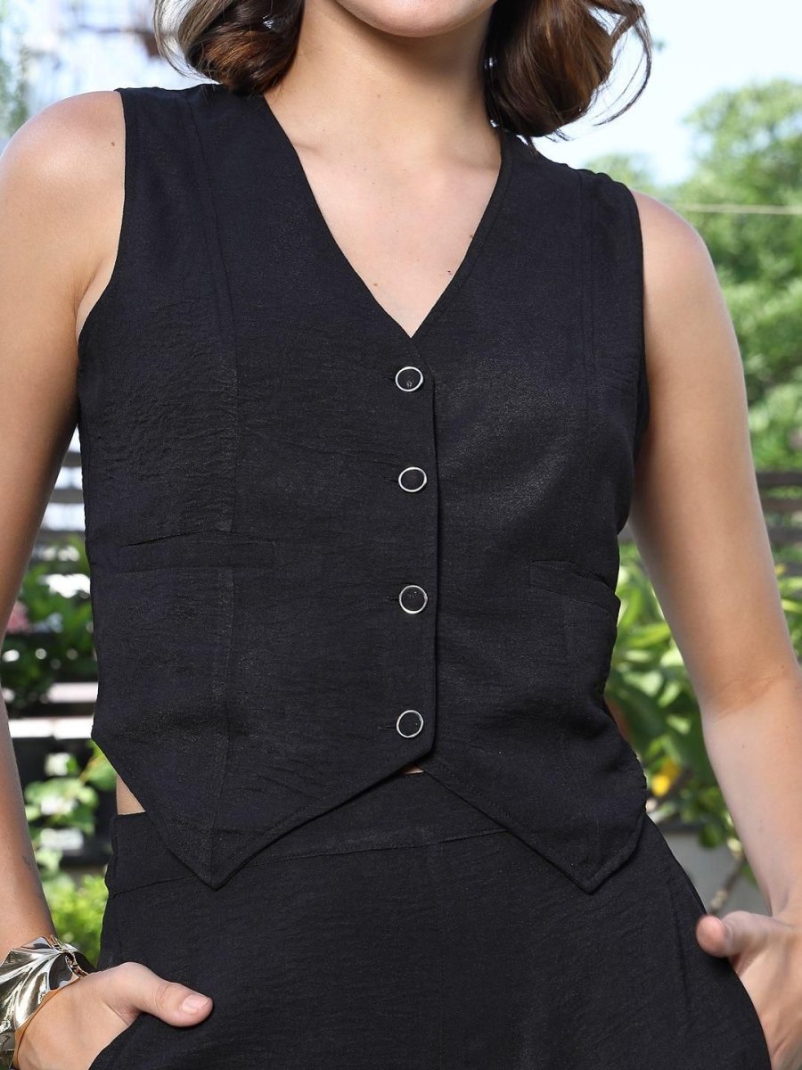 V-Neck Coat With Trousers Co-Ords black