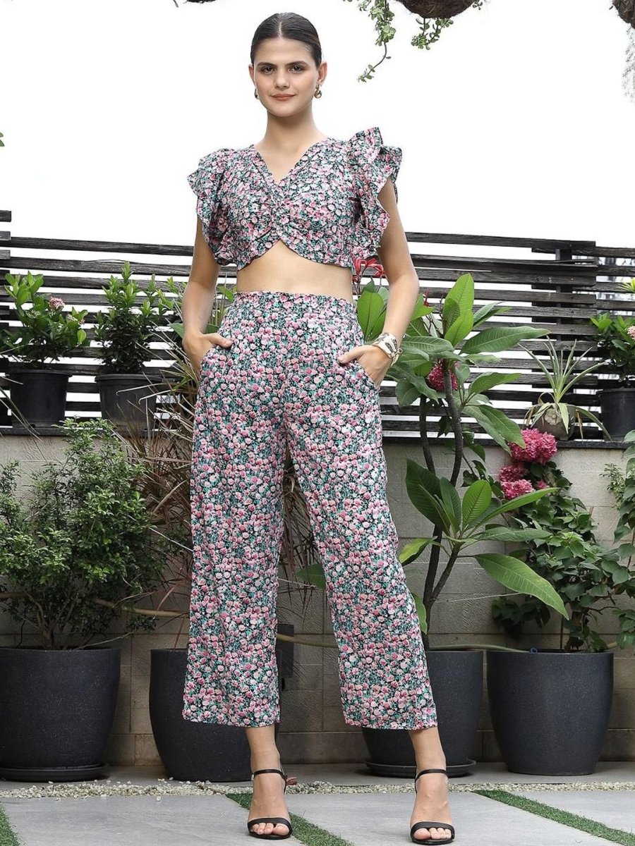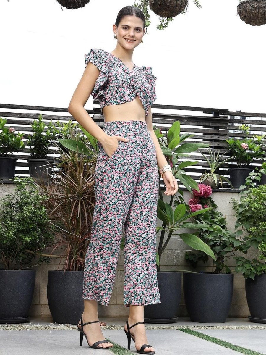 Shoulder Strap Printed Top With Palazzo Co-Ord Set multi