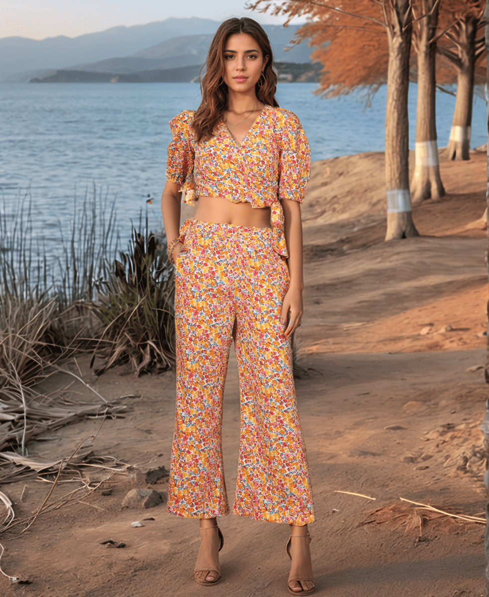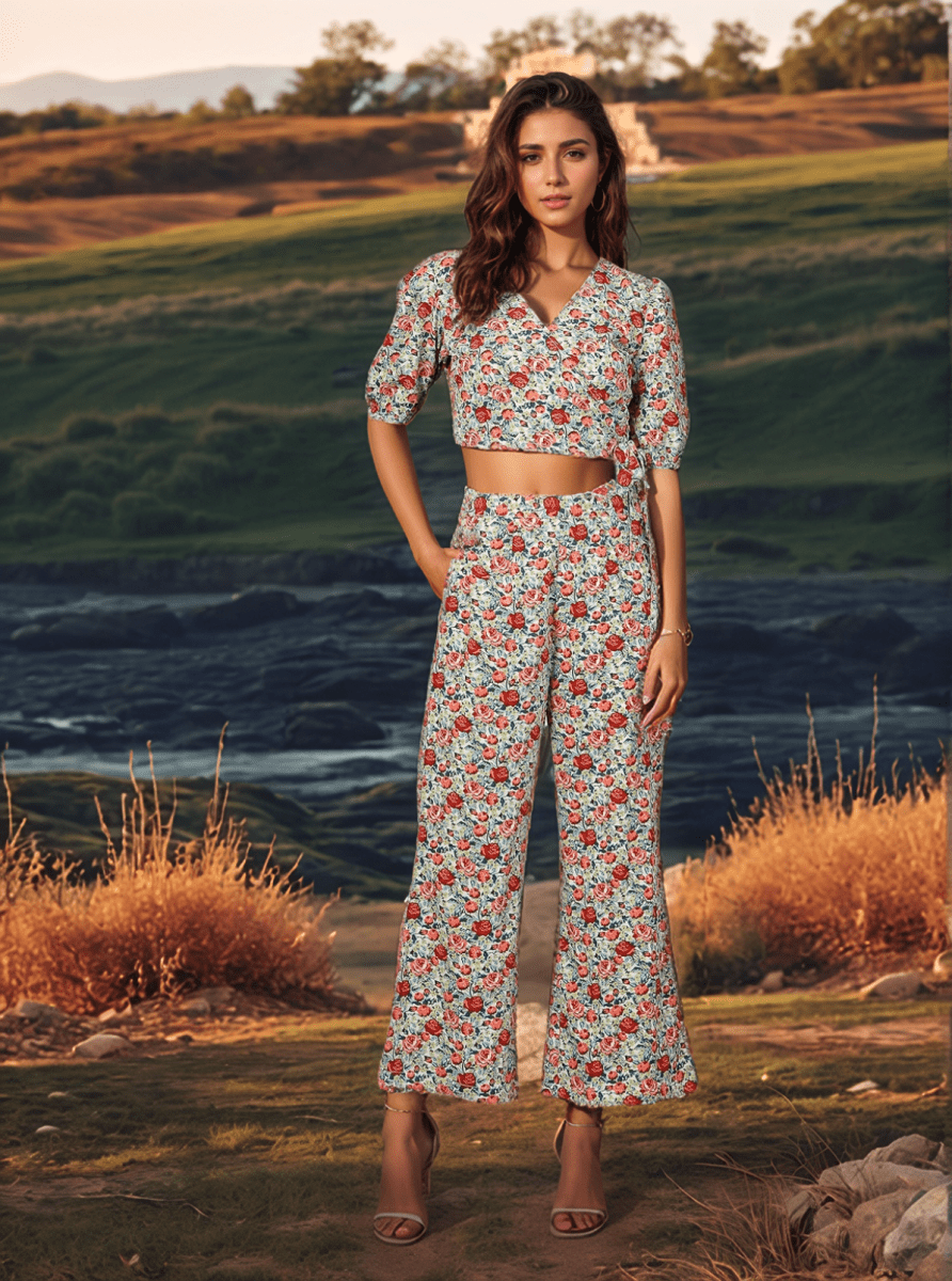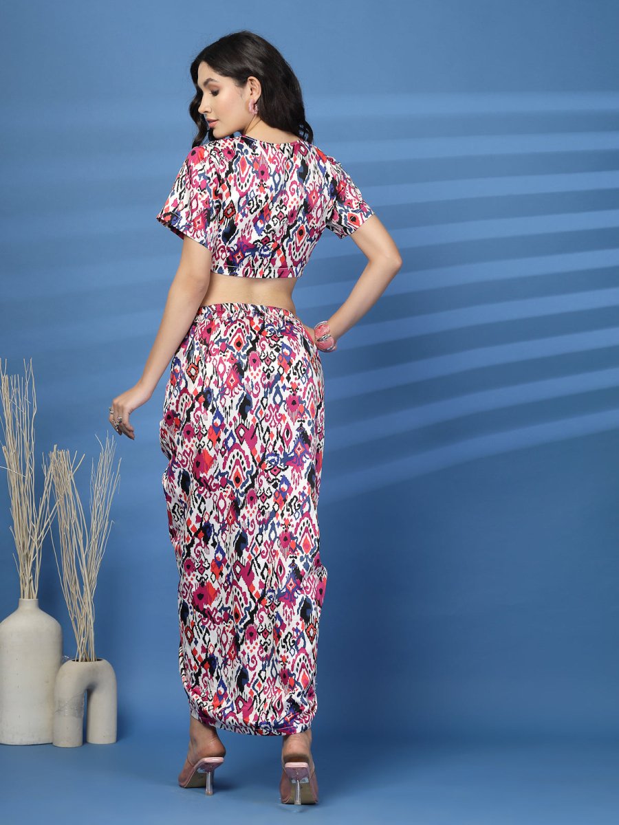 Printed Shoulder Strap Neck Top With Skirt Co-Ord Set multi