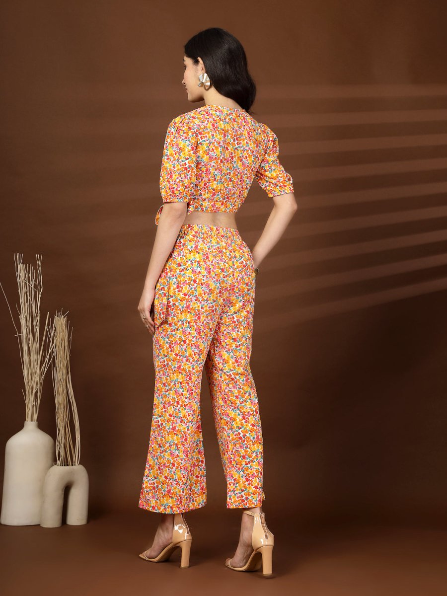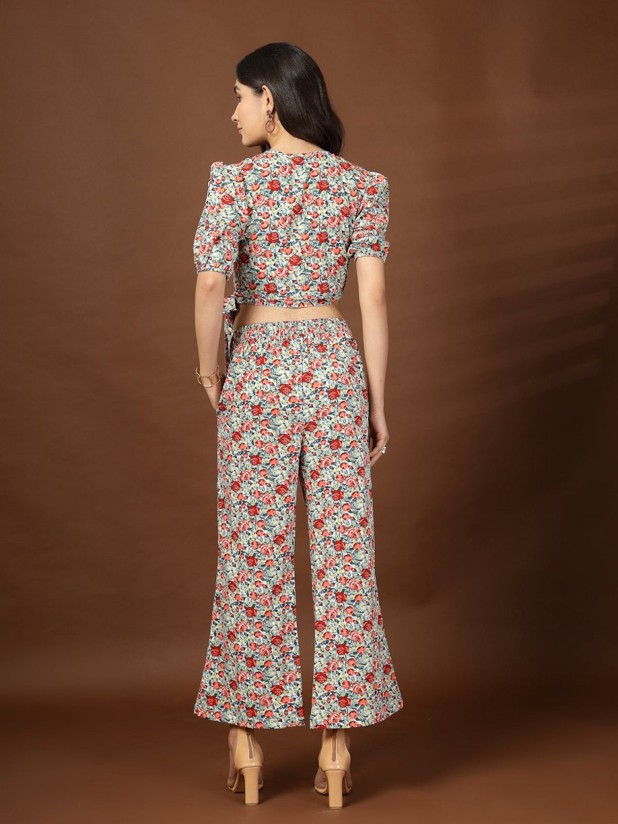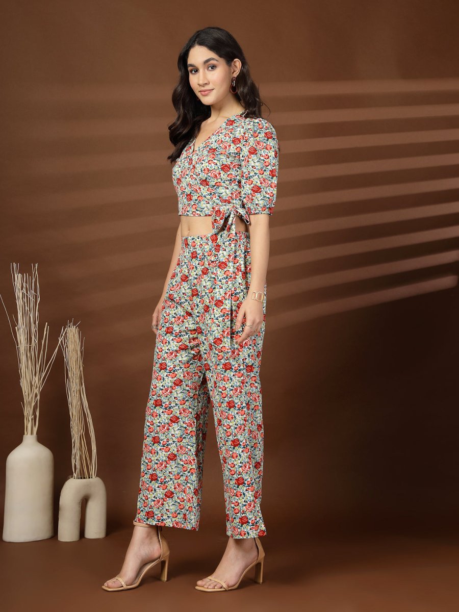 Green Printed Pure Cotton Shirt With Trousers Co-Ords