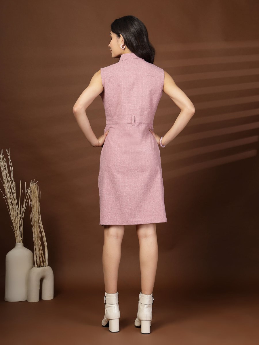 Puff Sleeves Cut-Outs Drop-Waist Dress pink
