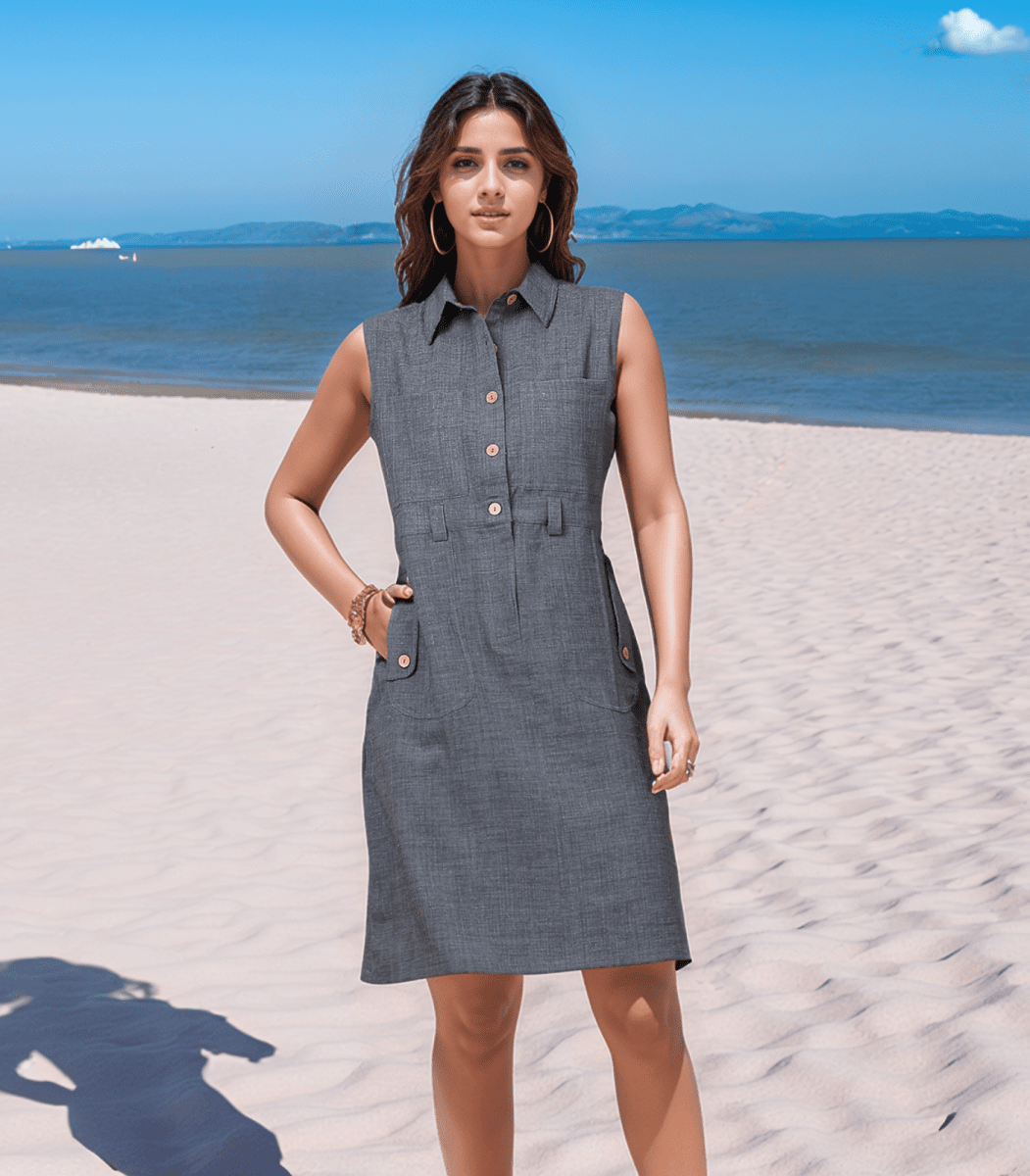 Shirt Collar Short Sleeves Striped Shirt Midi Dress