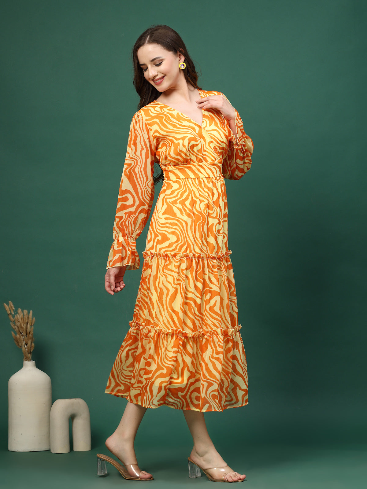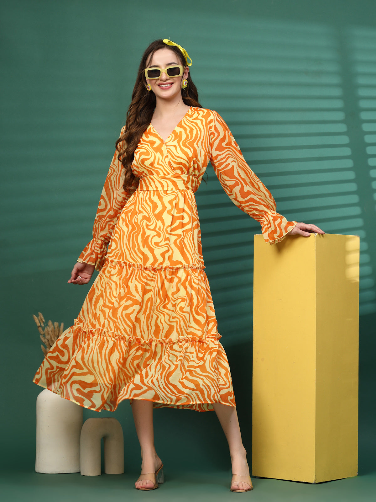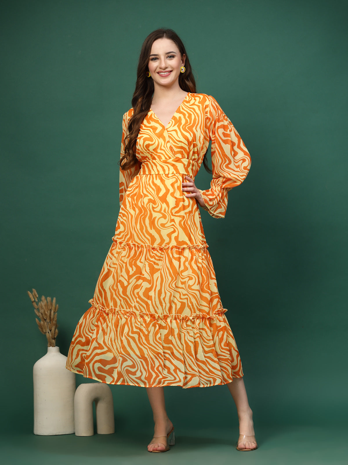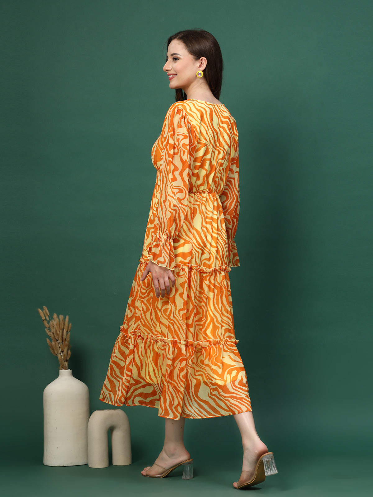 Brown Ethnic Motifs Printed Smocked Tiered A-Line Dress