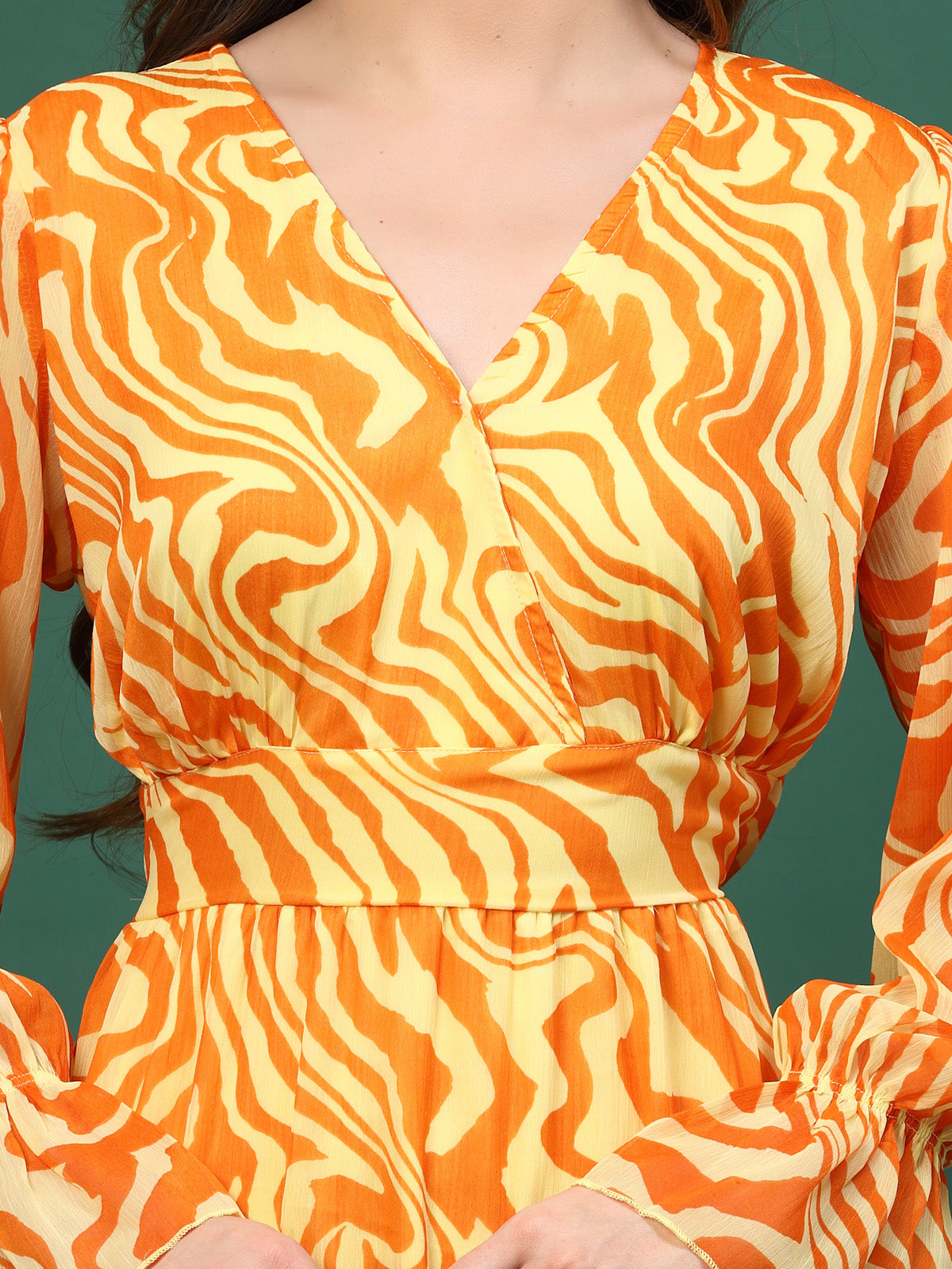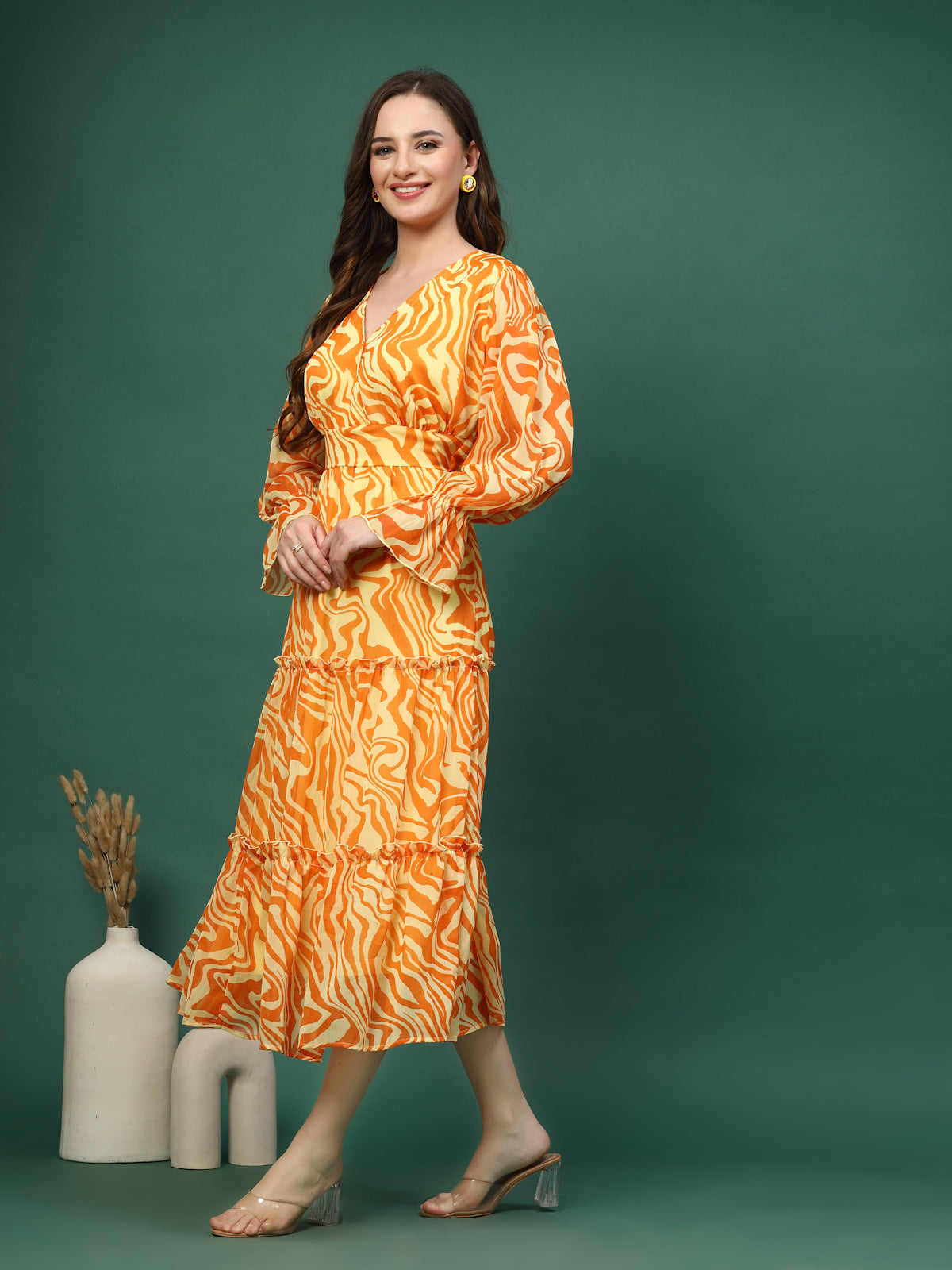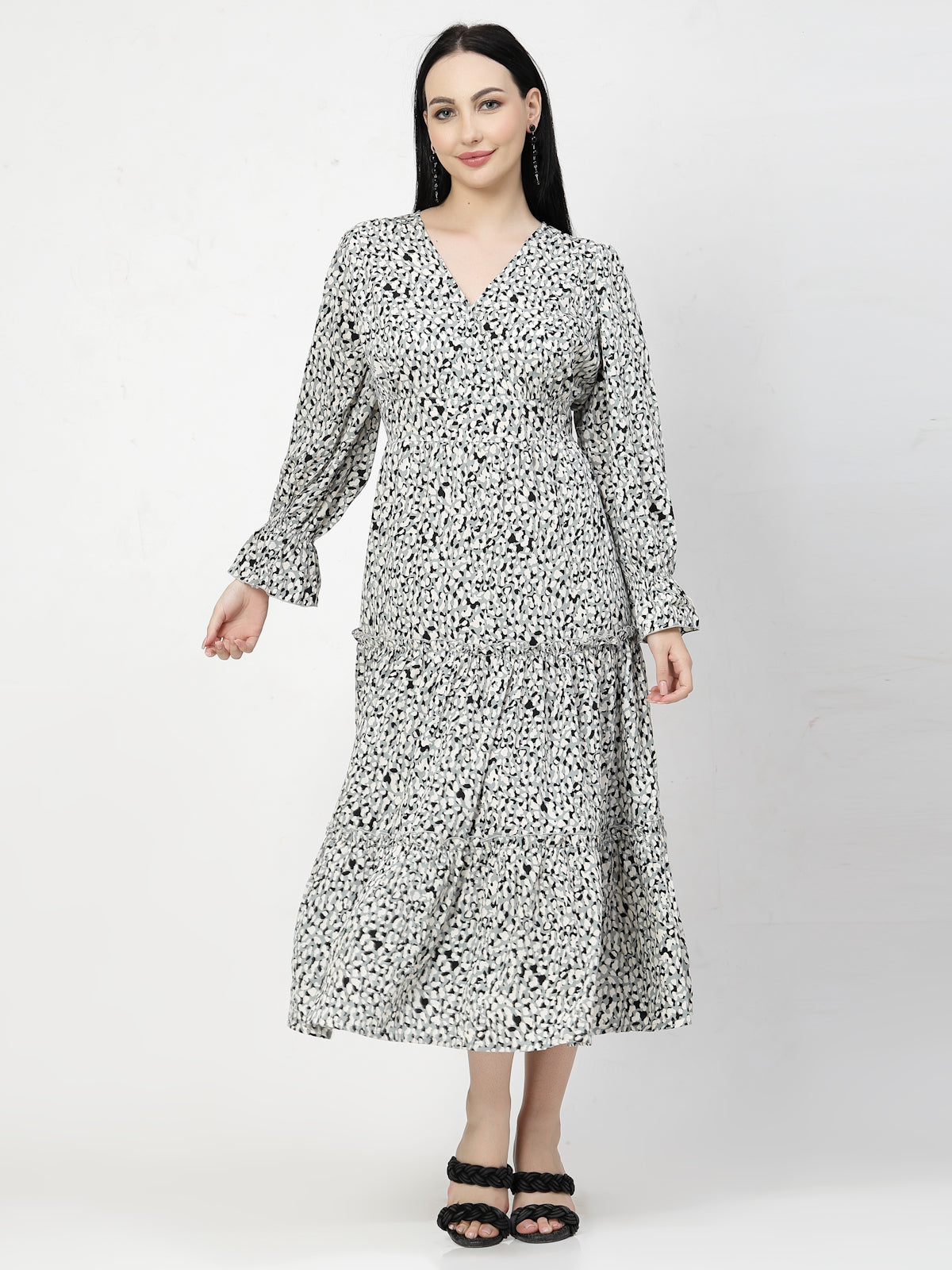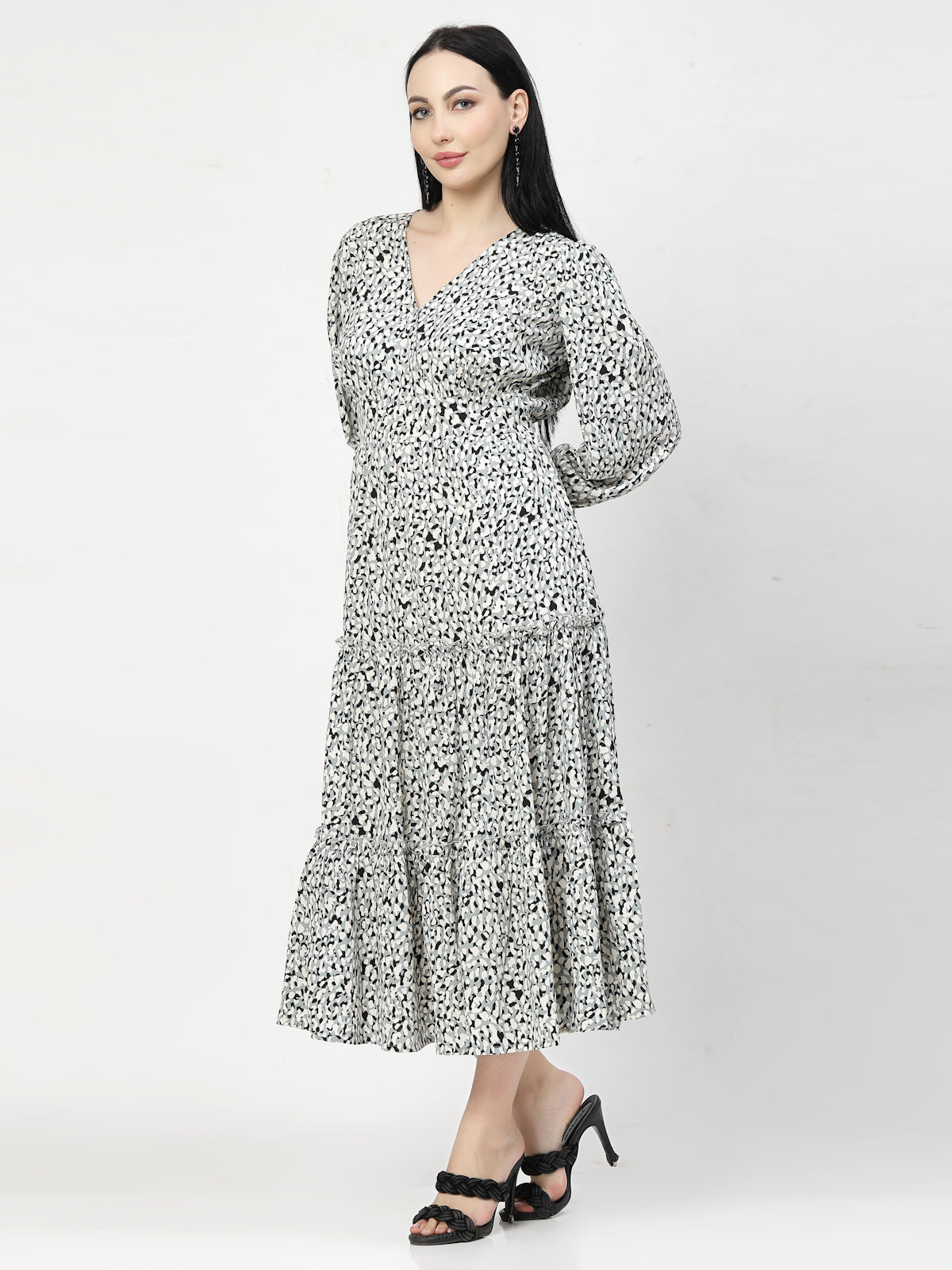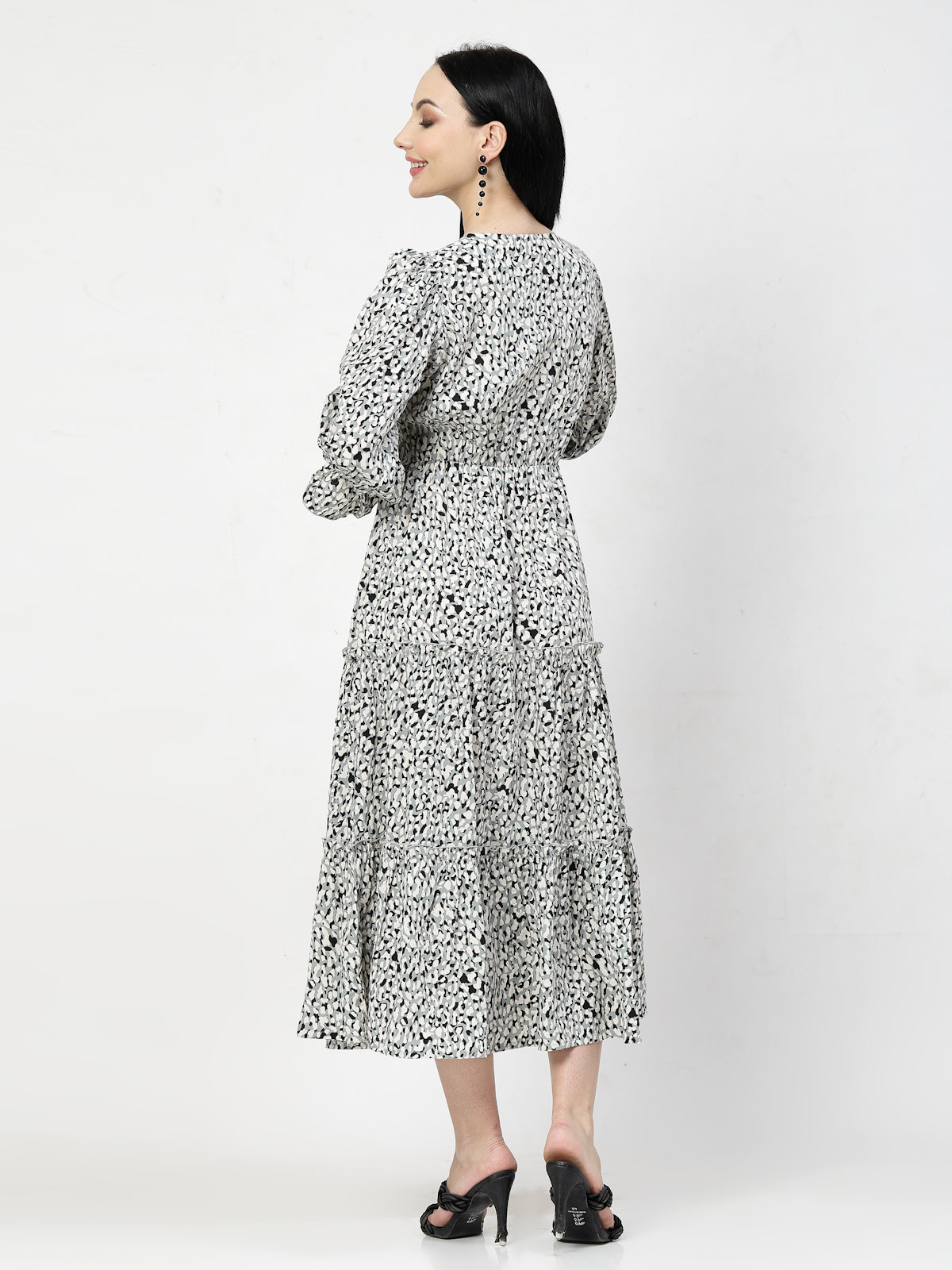 Animal Print Keyhole Neck Bell Sleeve A-Line Midi Dress