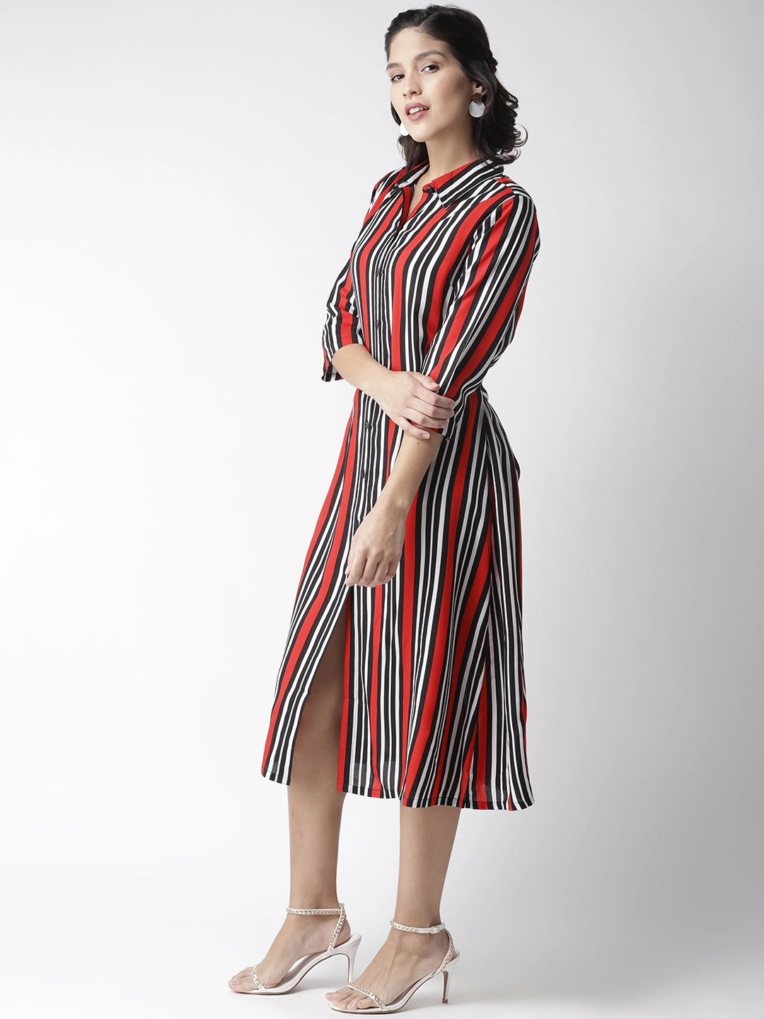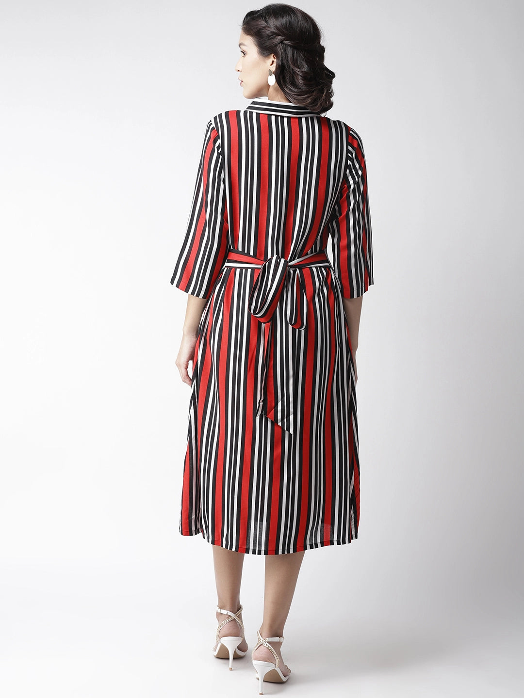 Women Self Design Flared Sleeve Cut-Outs Fit & Flare Midi Dress black