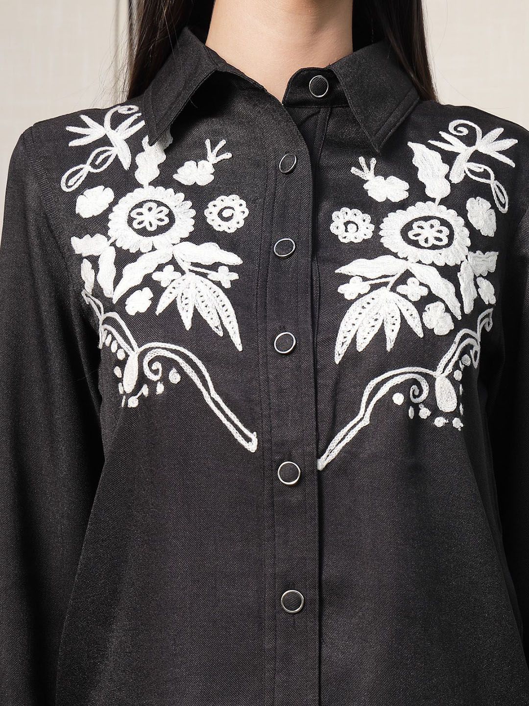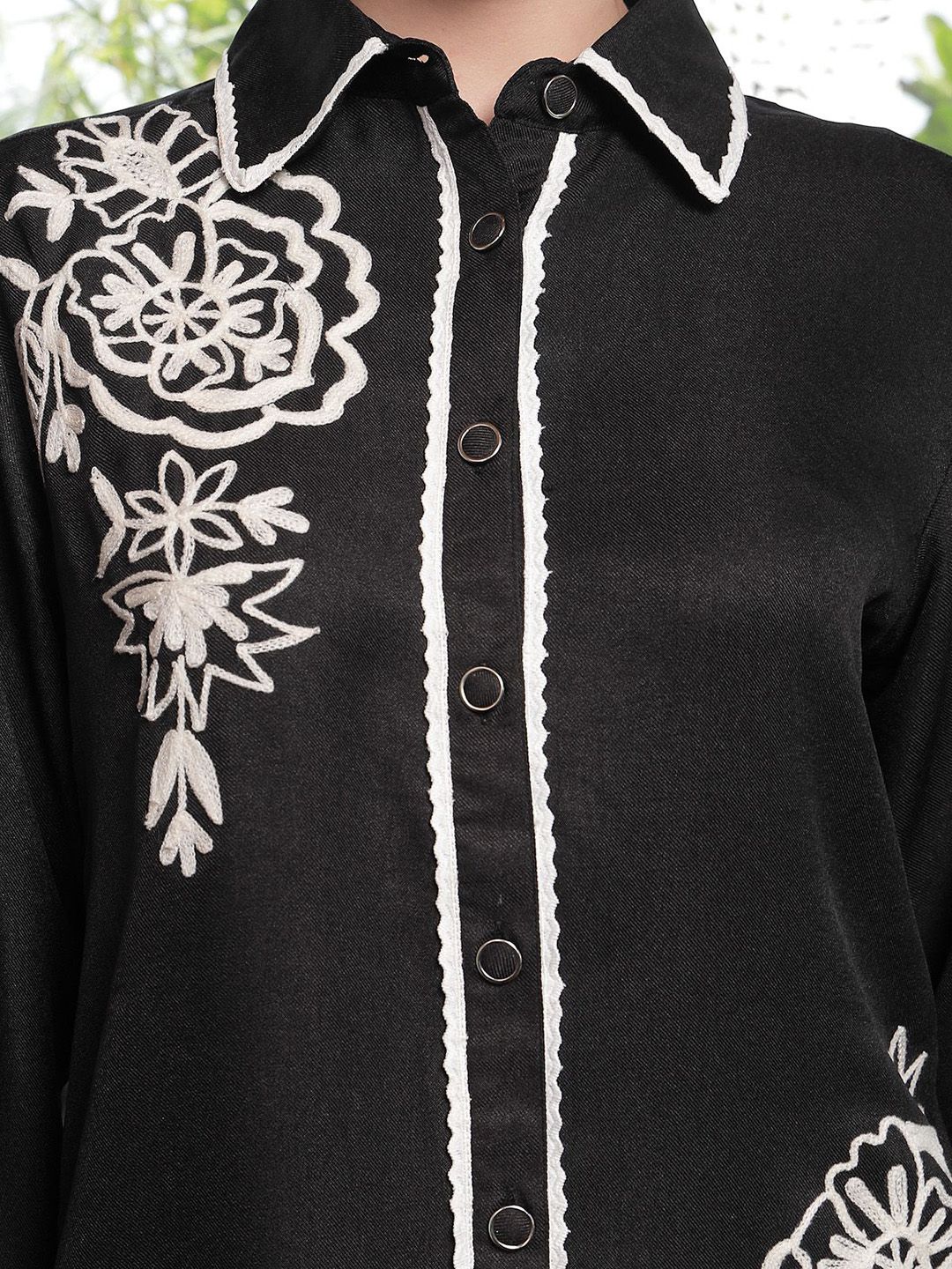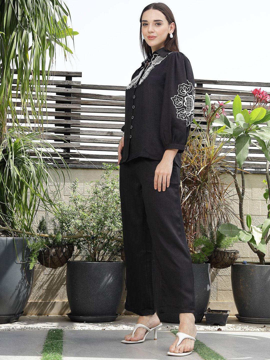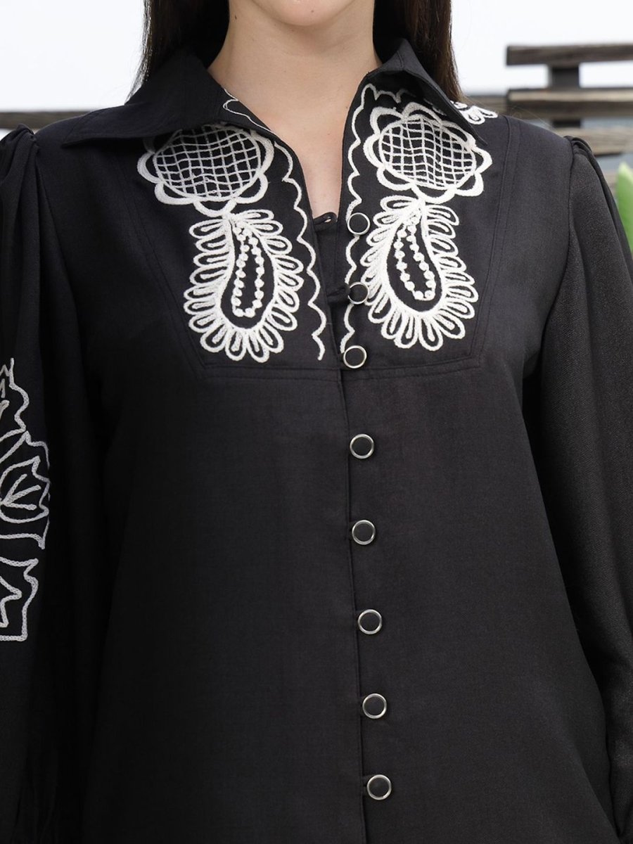 Shirt Collar Embroidered Cotton Shirt With Trousers Co-Ords Set black