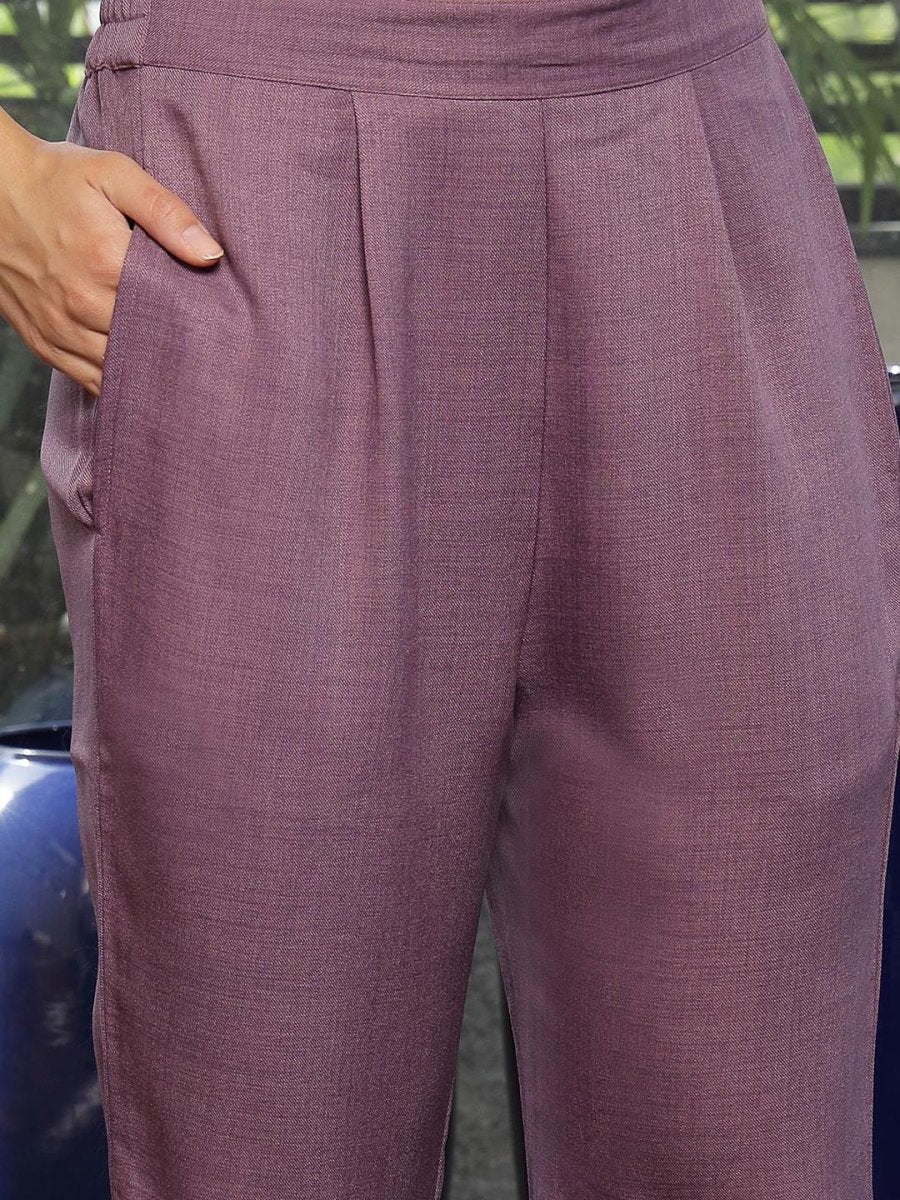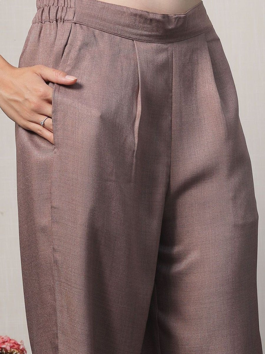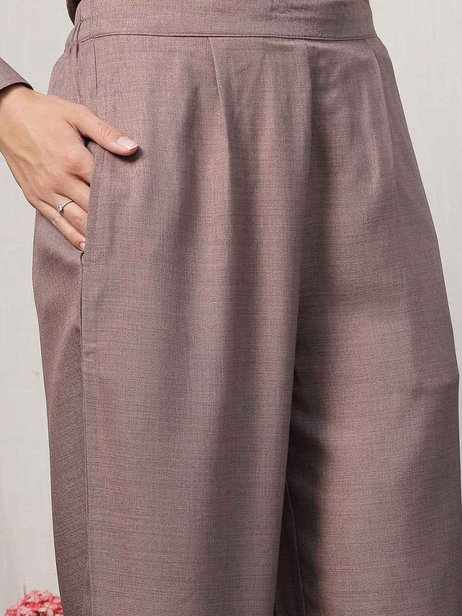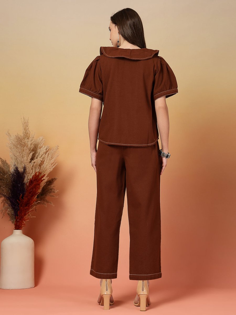 Solid Brown Round Neck Shirt With Trousers Co-Ords