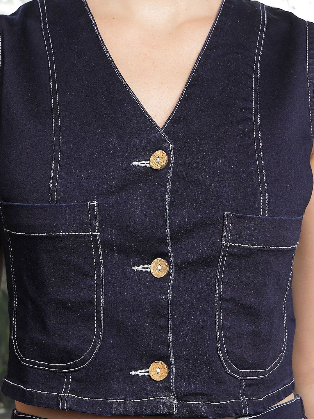 V Neck Cotton Top With Skirt Co-Ords blue