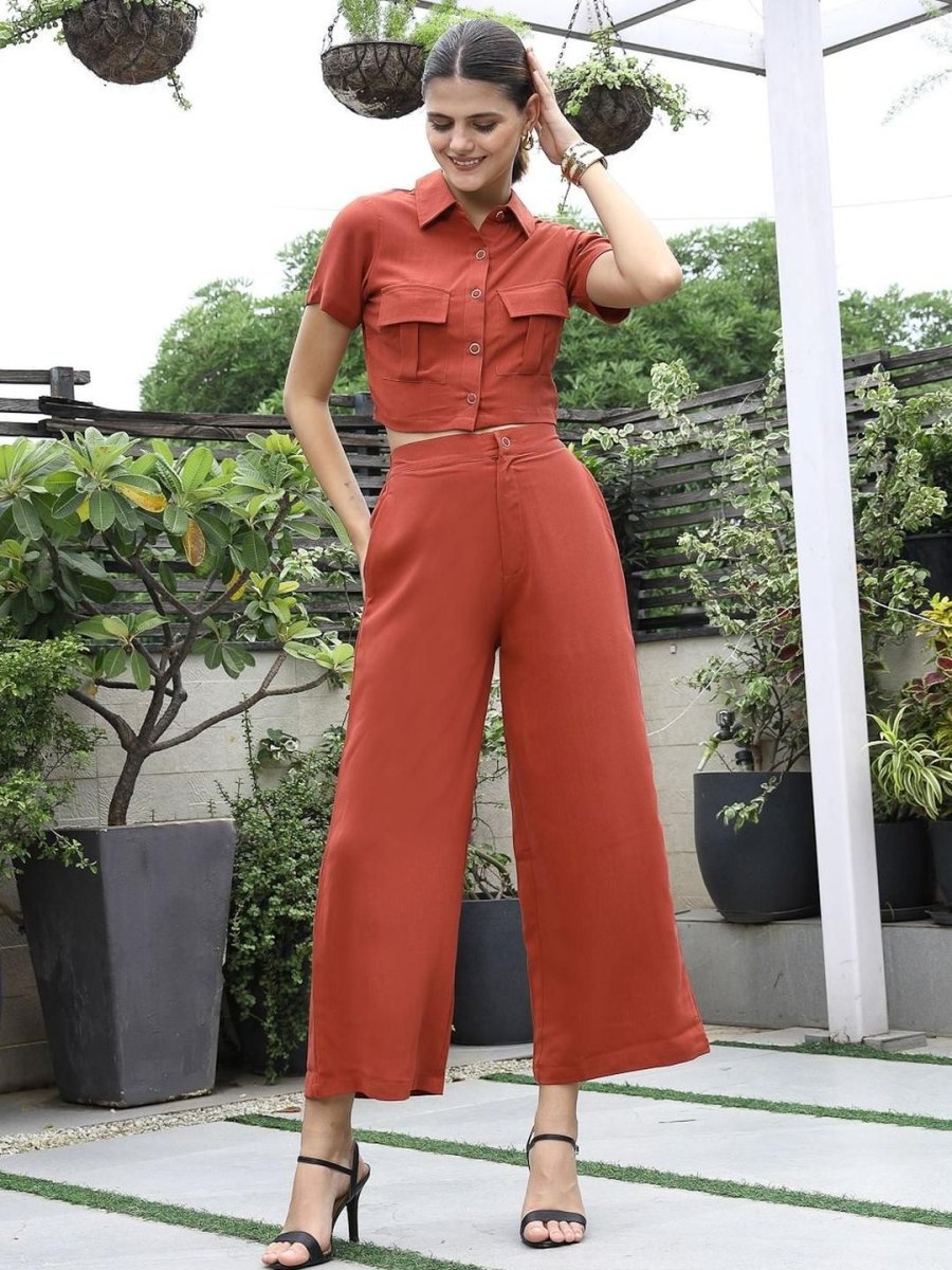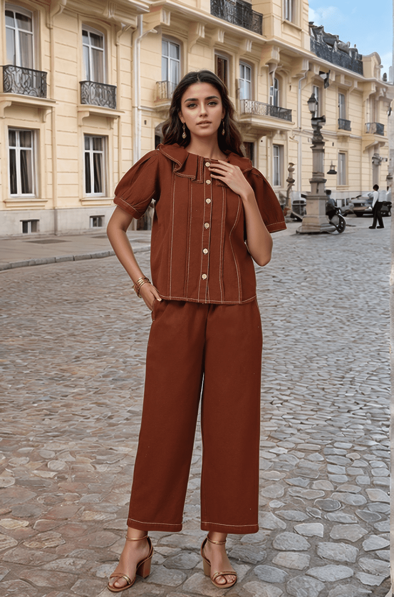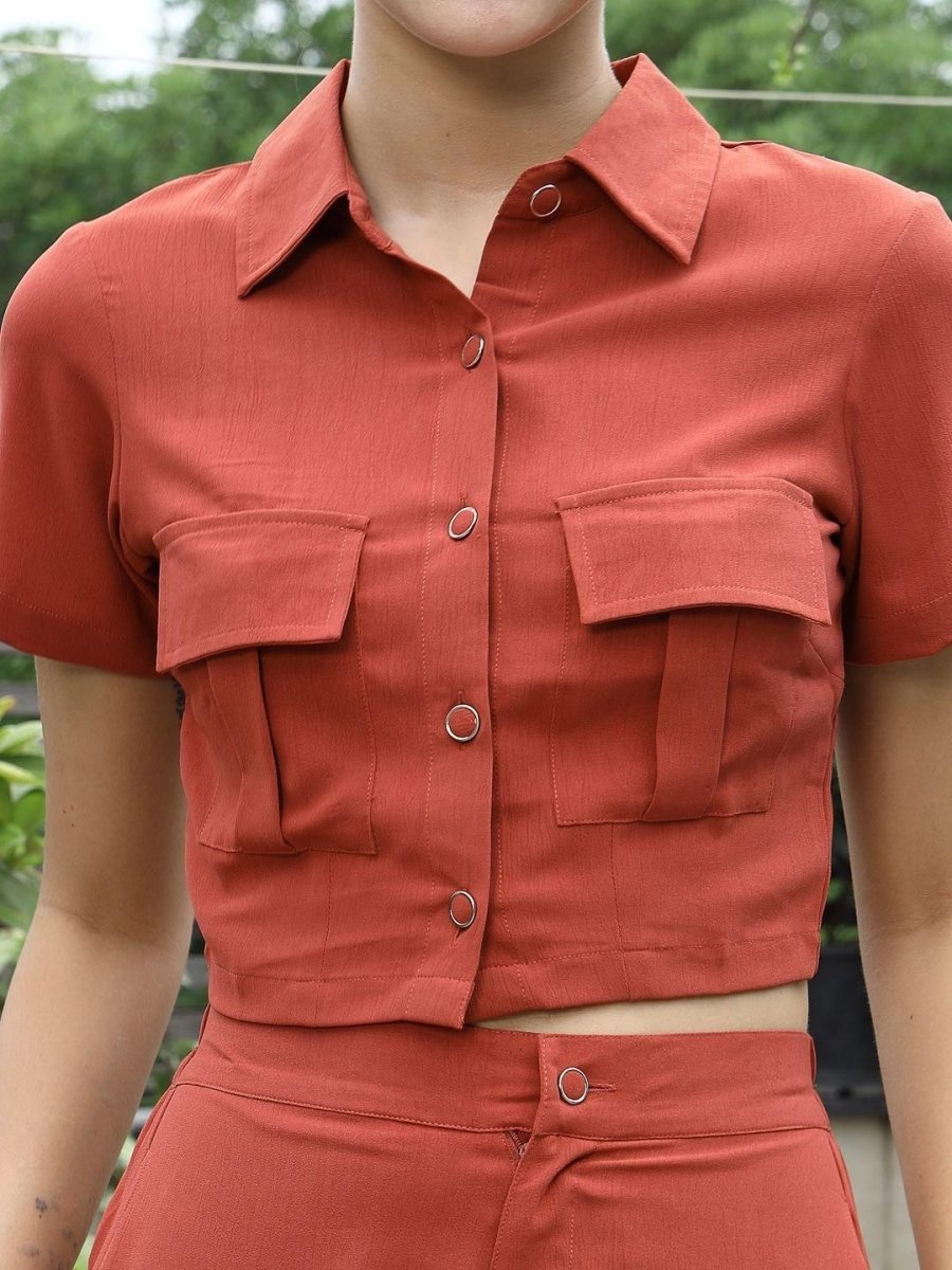Shirt Collar Short-Sleeve Co-Ord Set rust