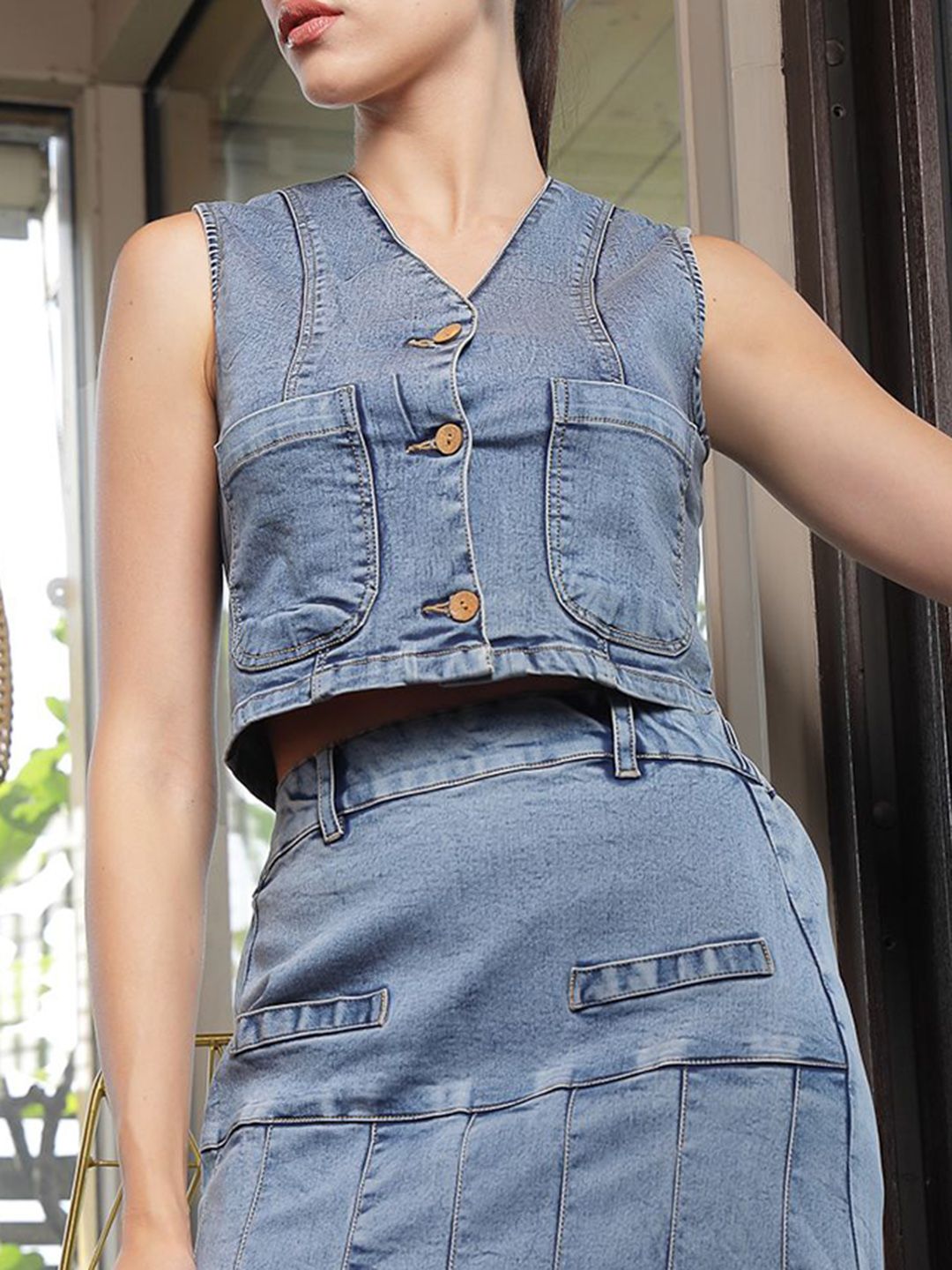 V Neck Cotton Top With Skirt Co-Ords light-blue