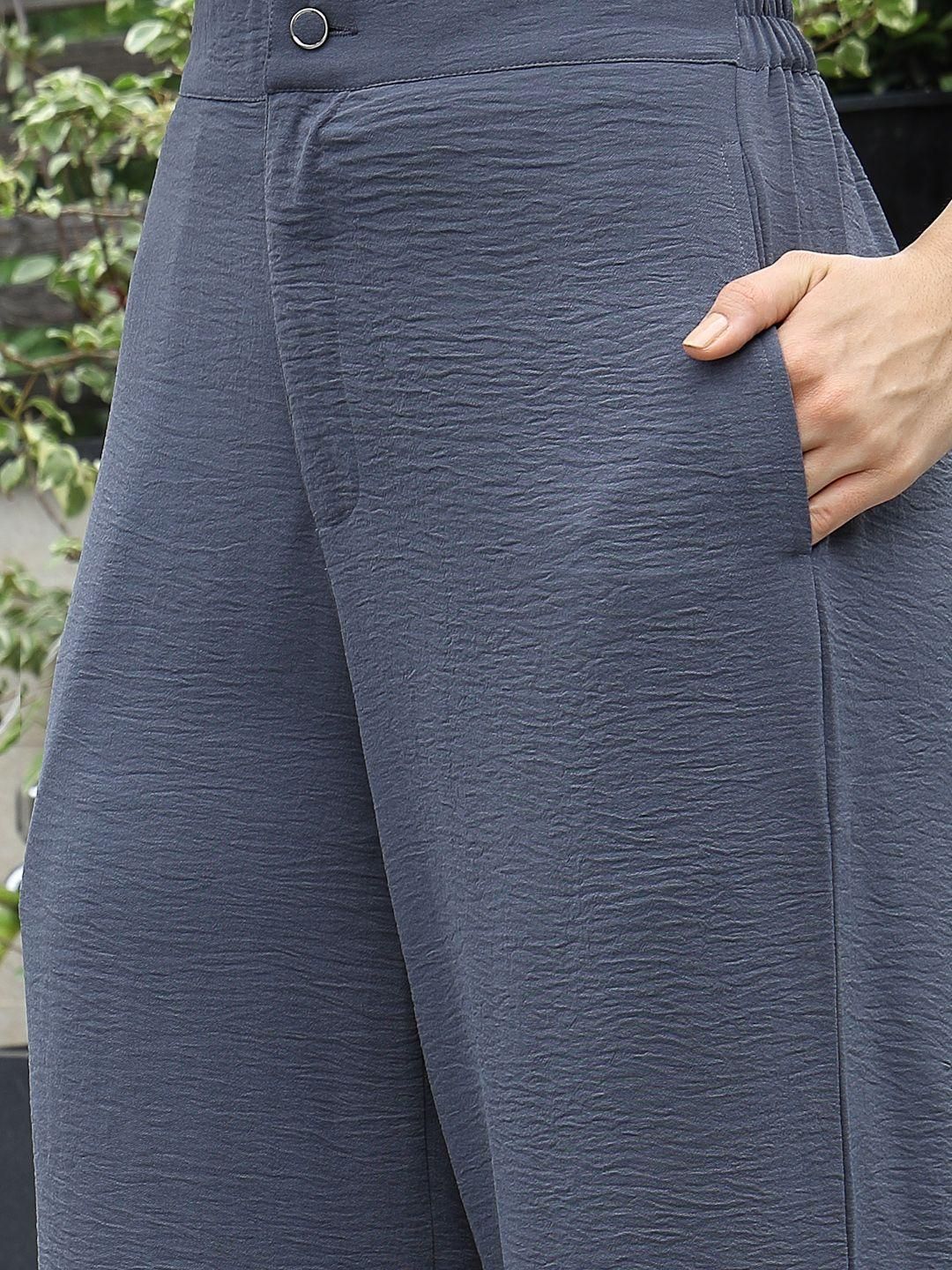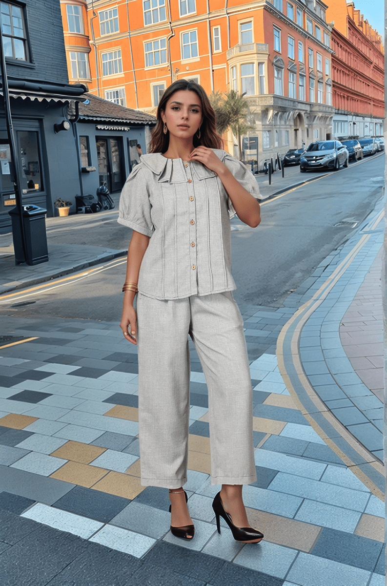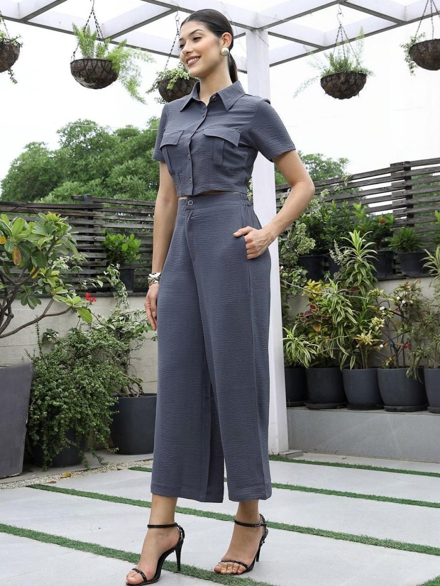 Round Neck Cotton Shirt With Trousers Co-Ords charcoal