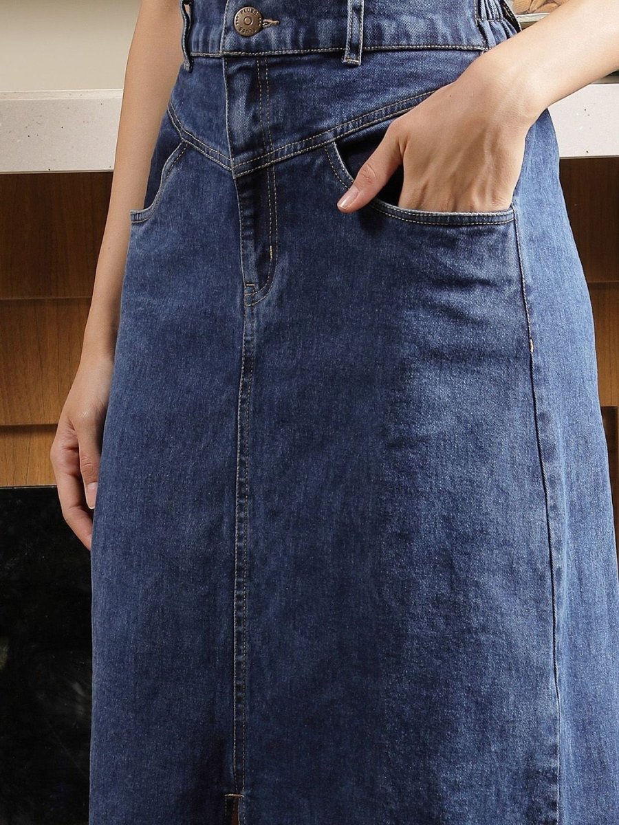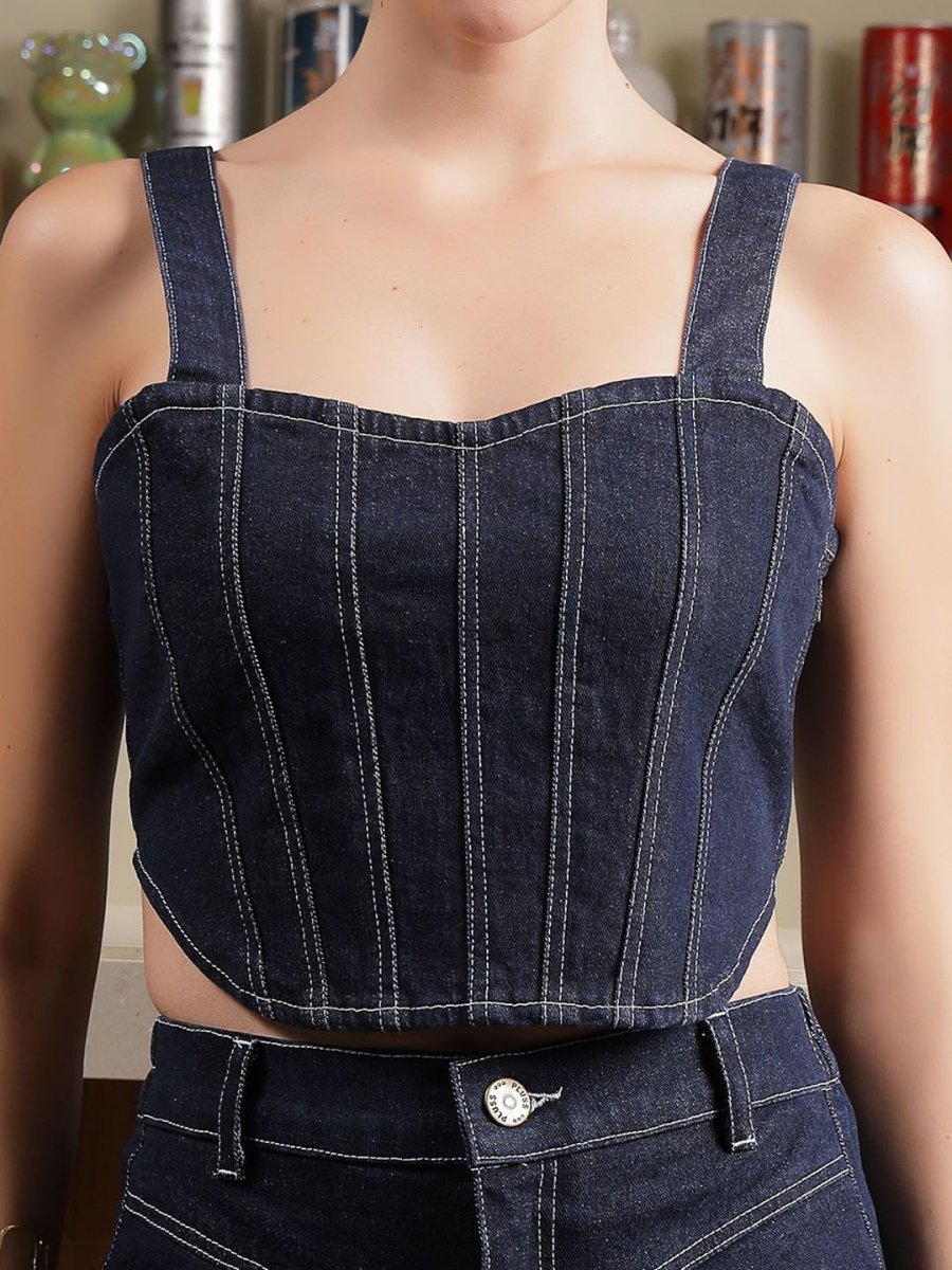 Shoulder Strap Neck Cotton Top With Skirt Co-Ords blue