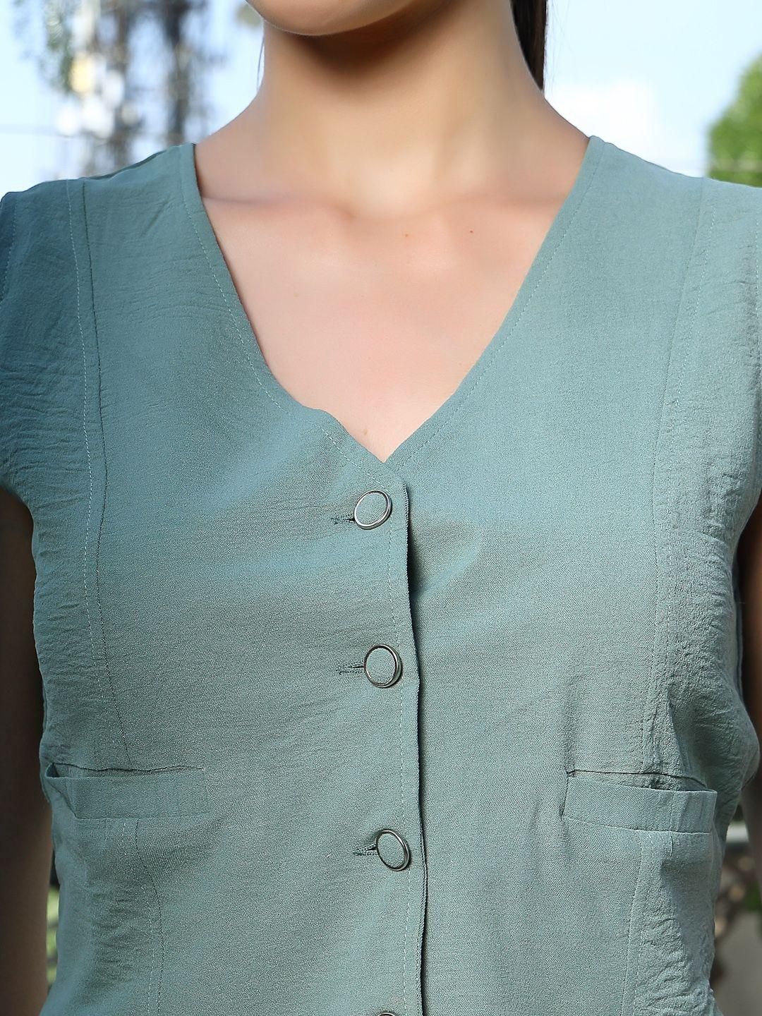 V-Neck Sleeveless Co-Ords sea Green