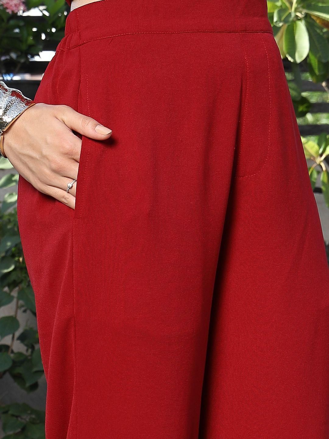 V-Neck Coat With Trousers Co-Ords red