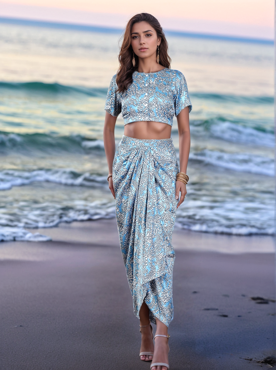 Blue Floral Print Top
