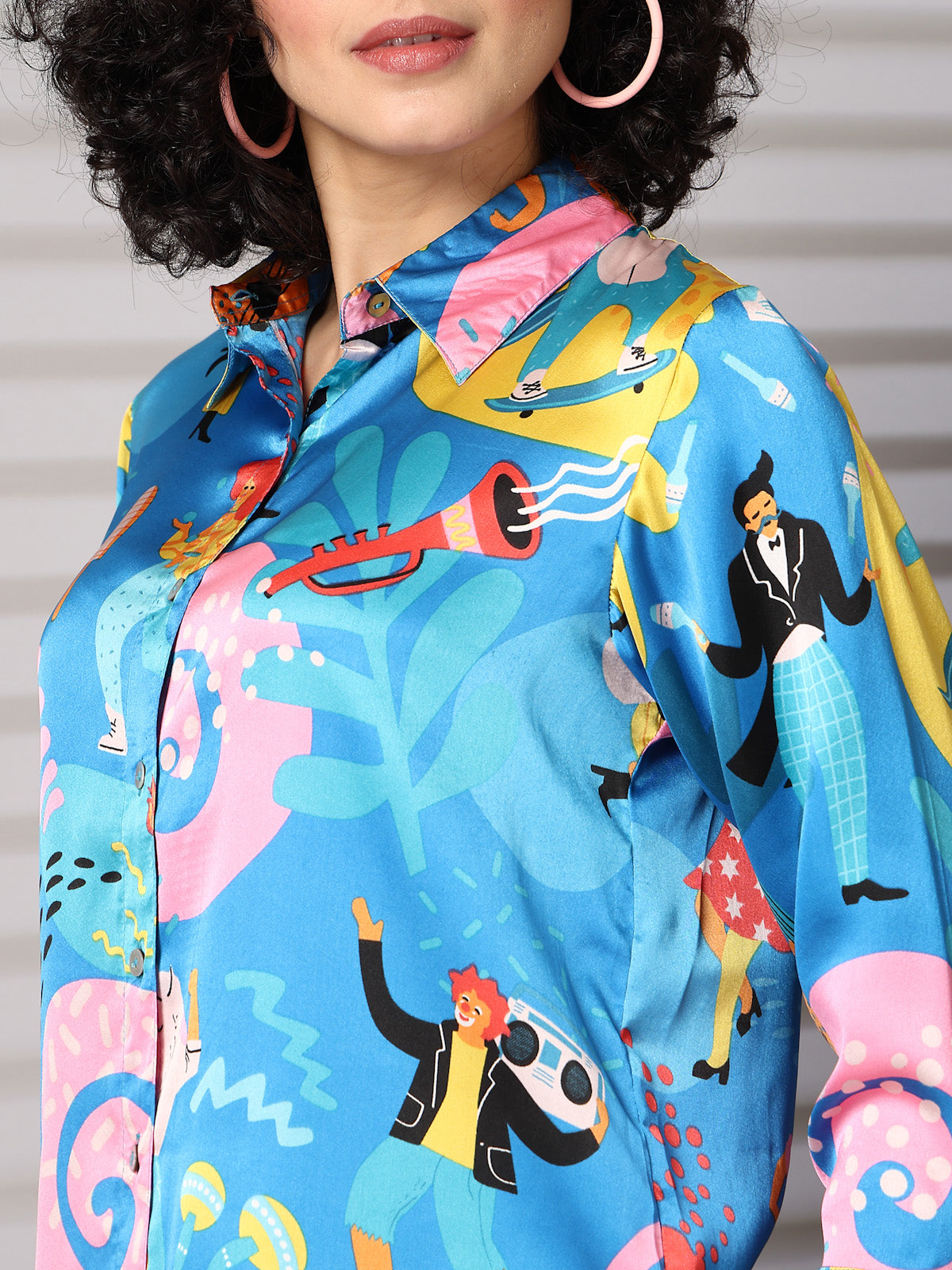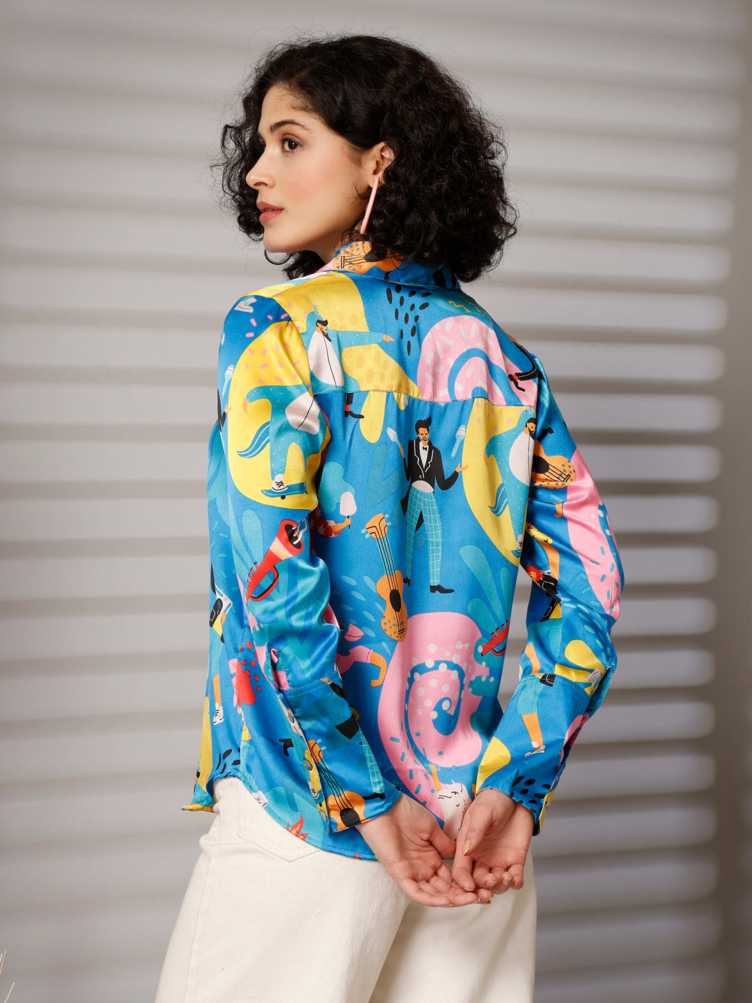 Ethnic Motifs Printed Mandarin Collar Cuffed Sleeves Shirt Style Top