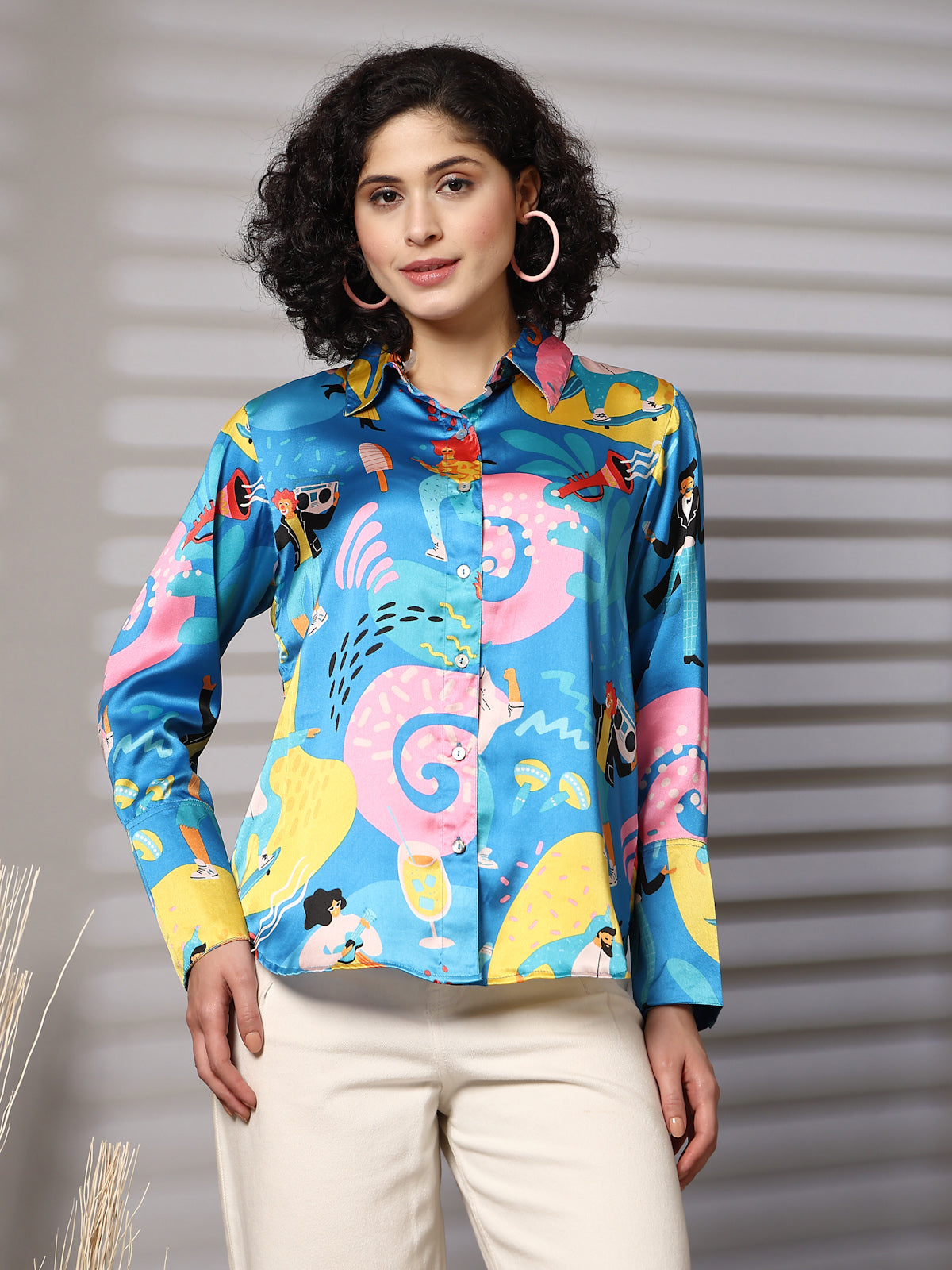 Women Animal Opaque Printed Casual Cotton Buttoned Top