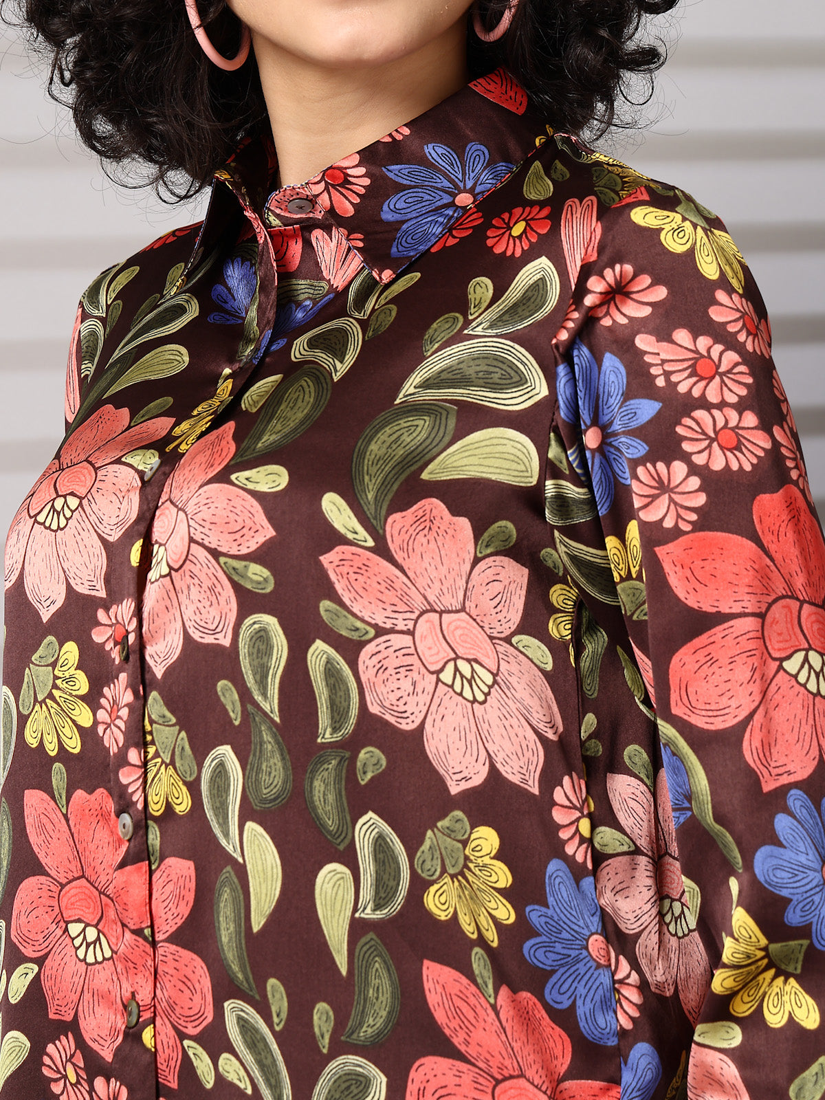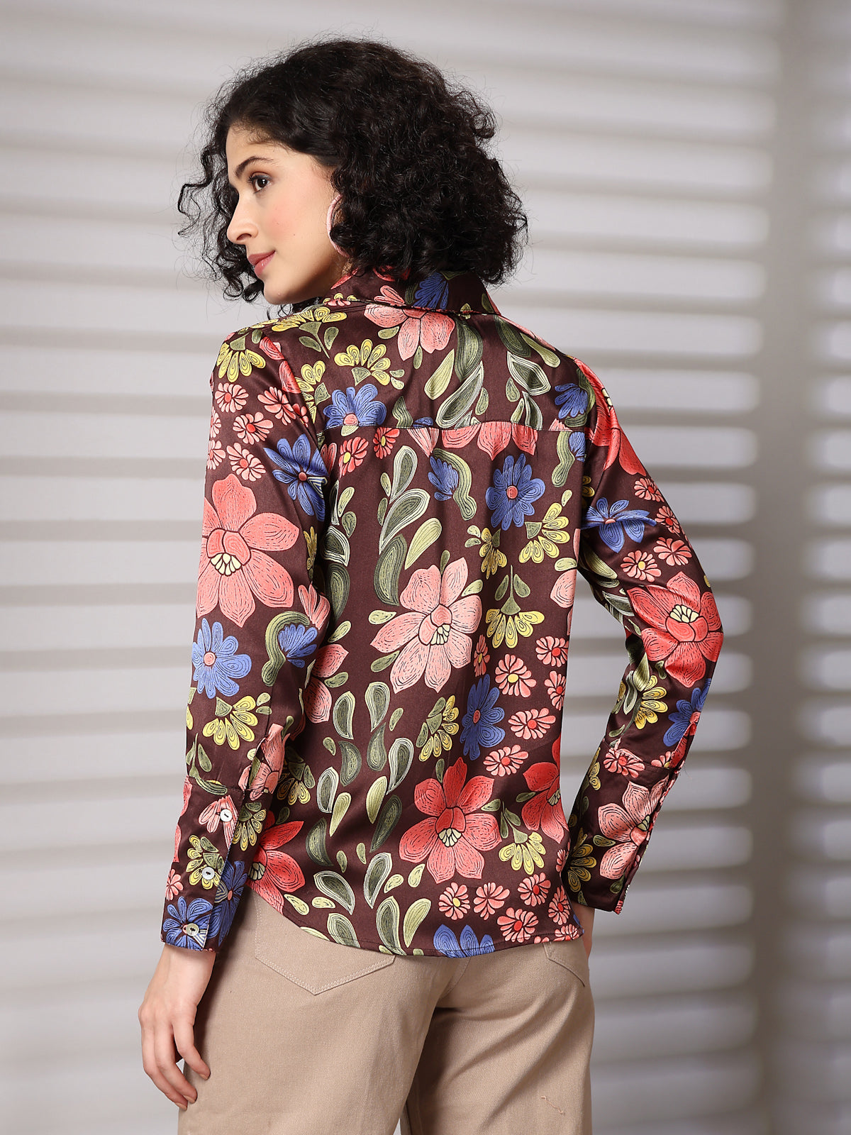 Women Standard Floral Opaque Printed Casual Buttoned Top