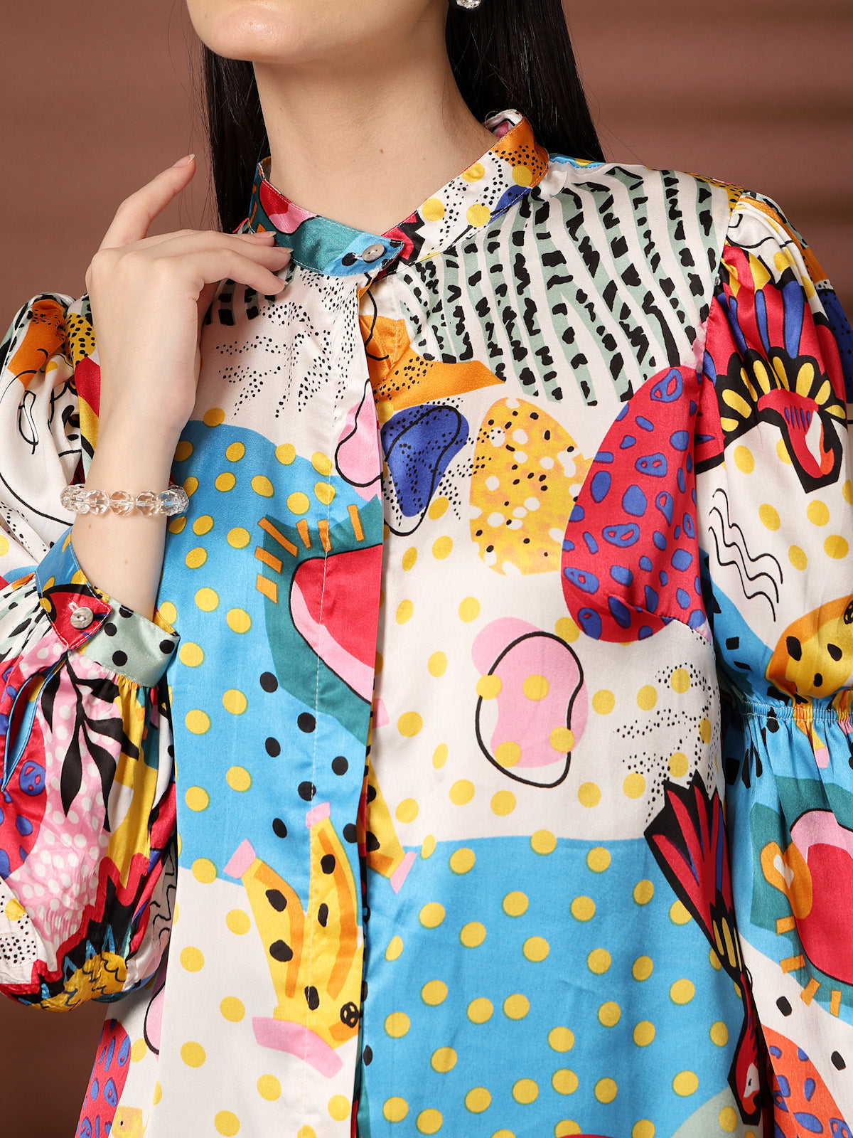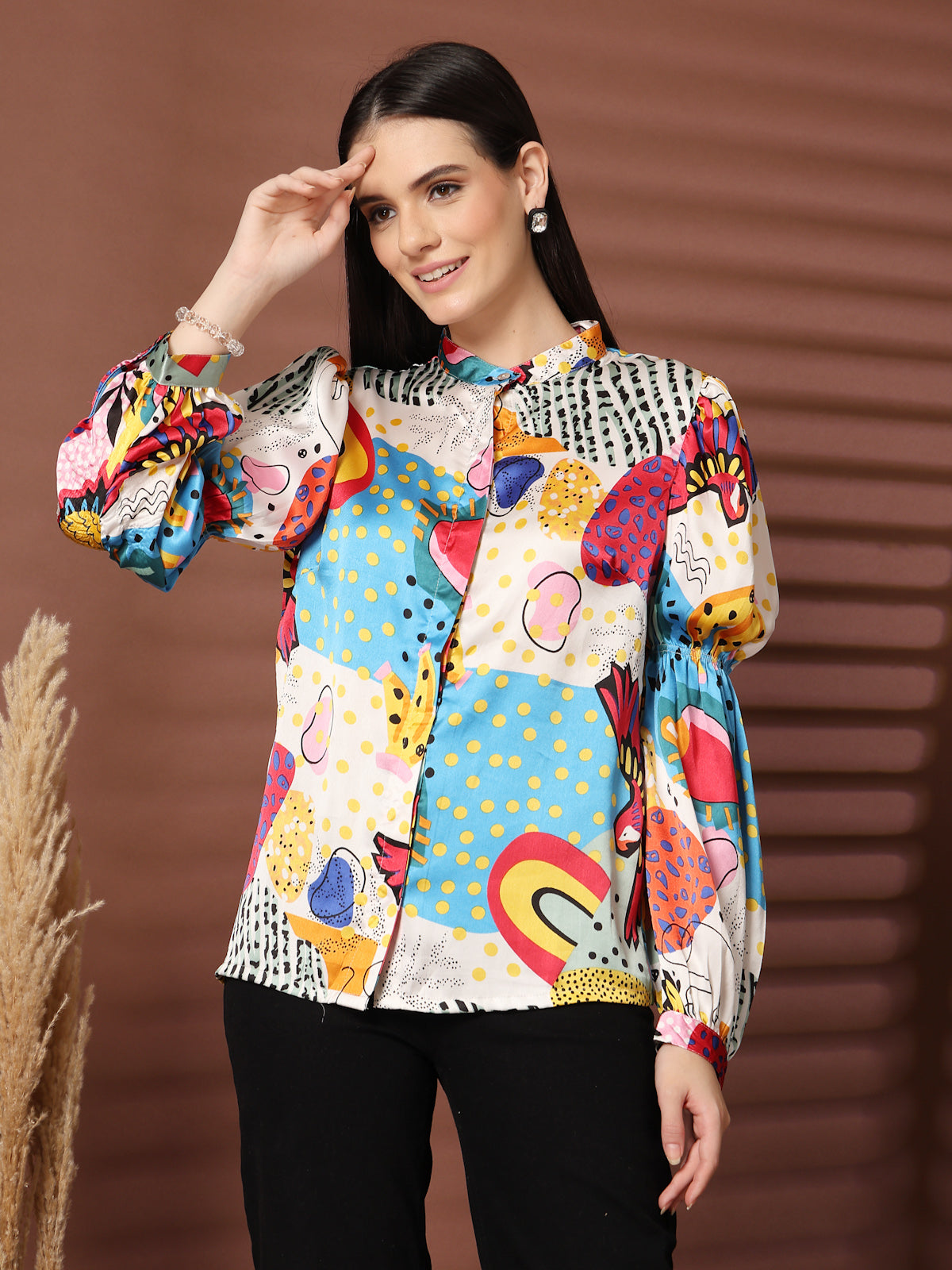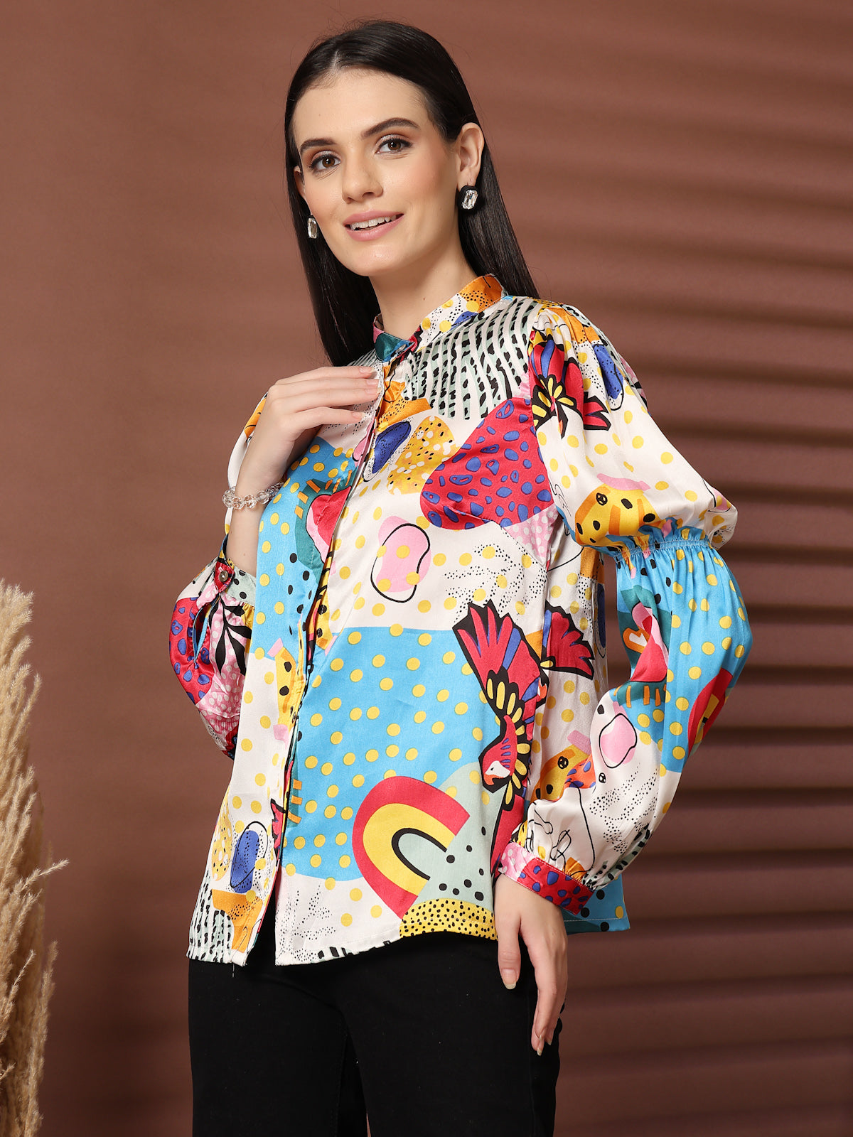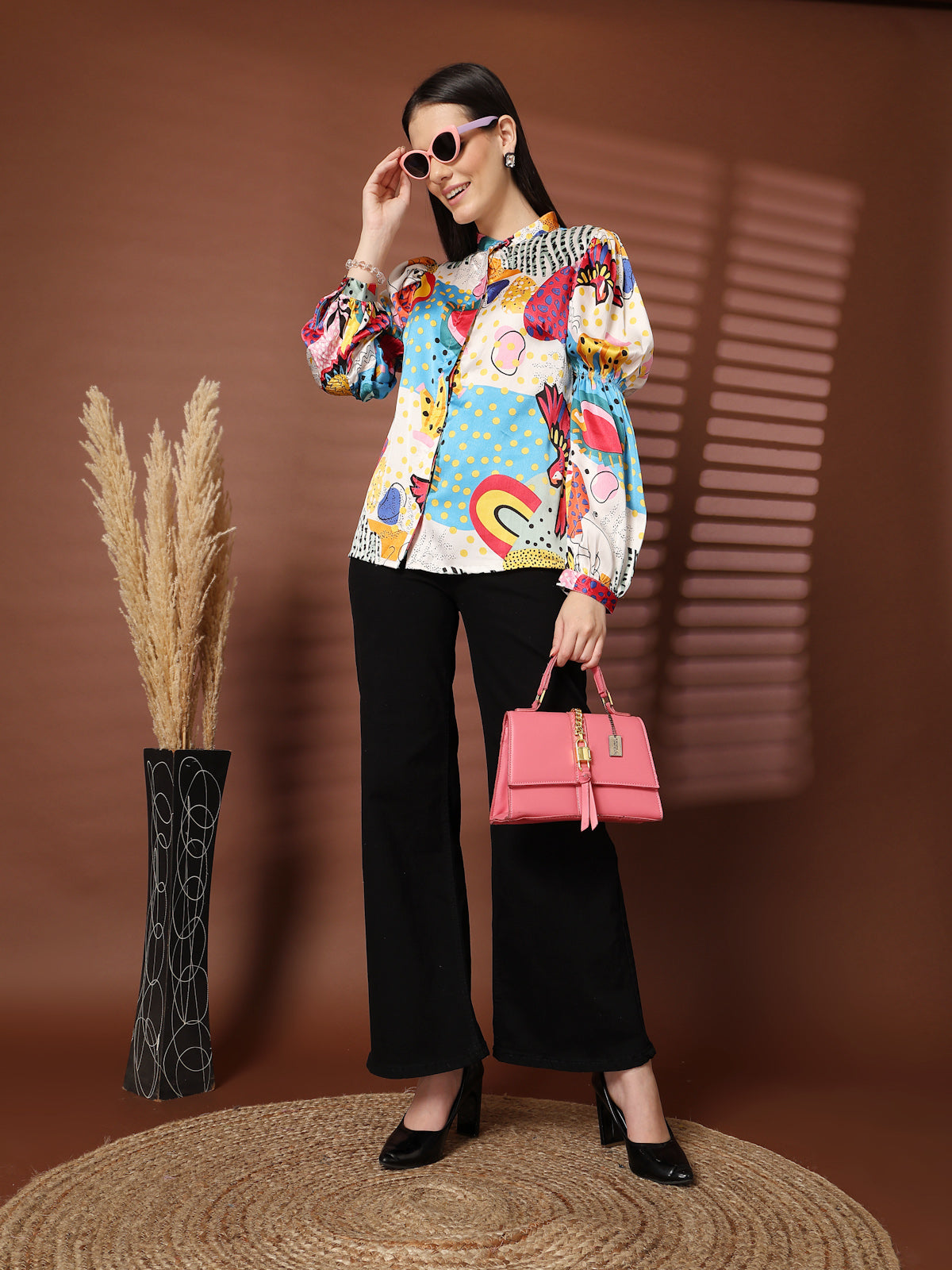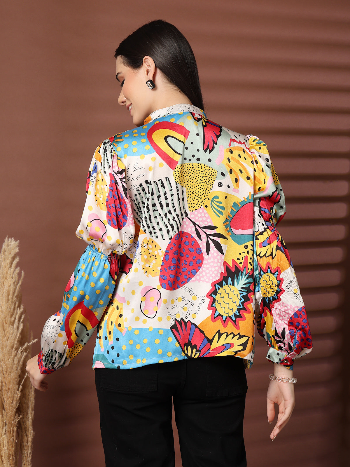 Women Multi Floral Opaque Printed Casual Buttoned Top