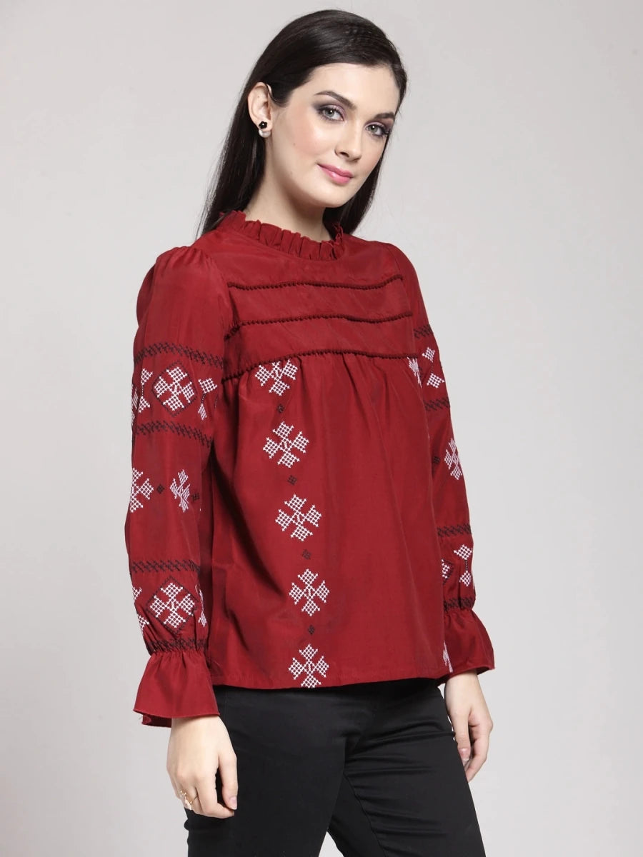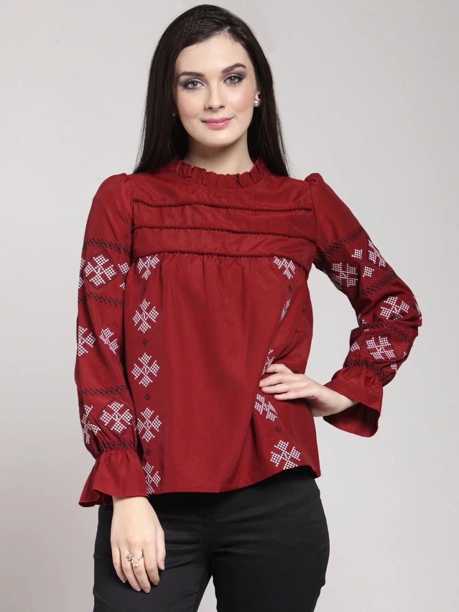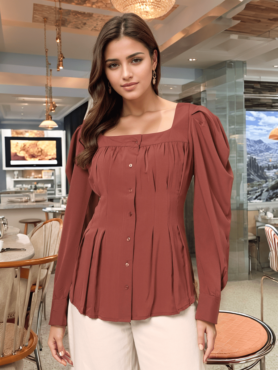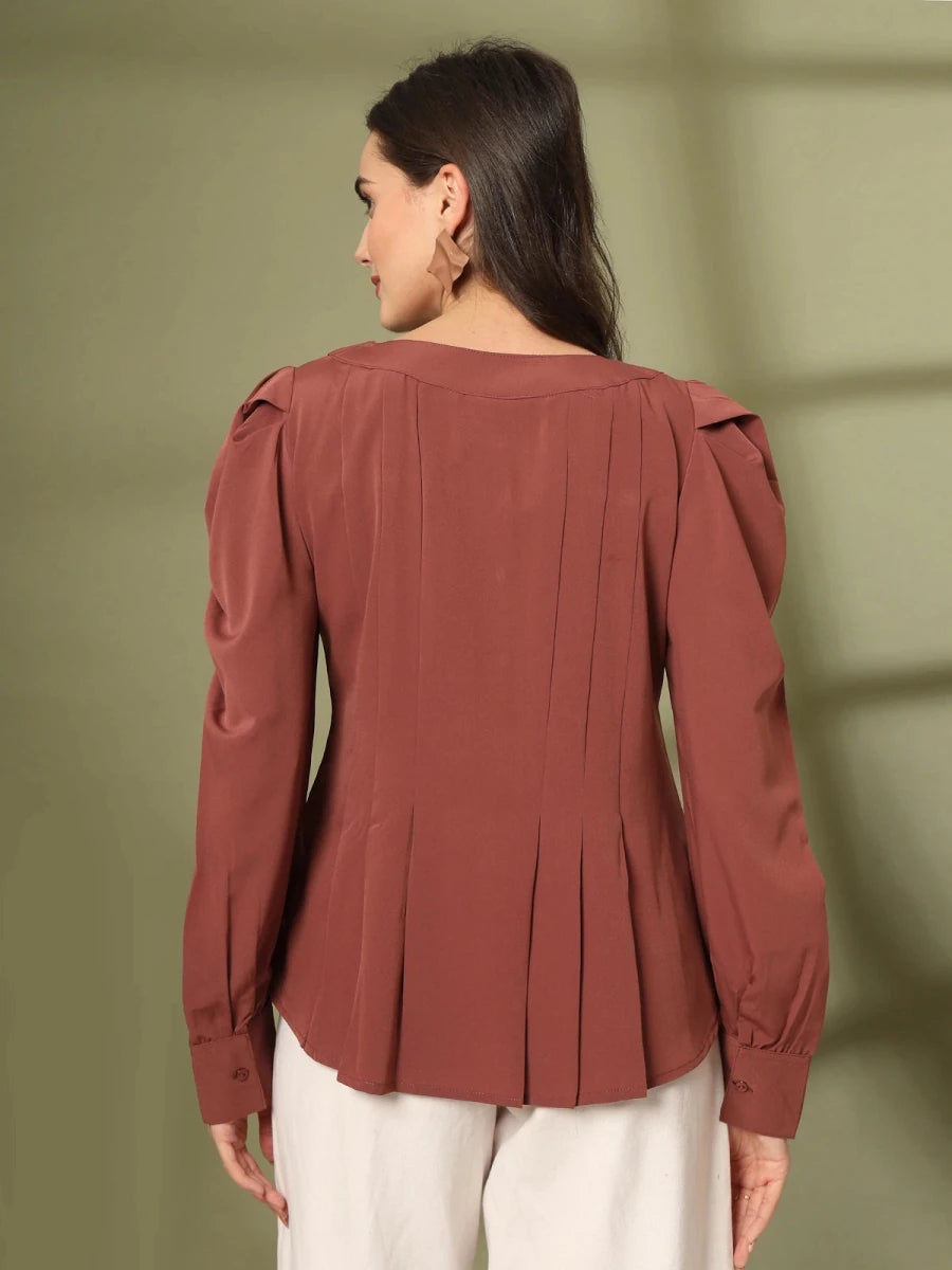 Brown Solid V-Neck Top