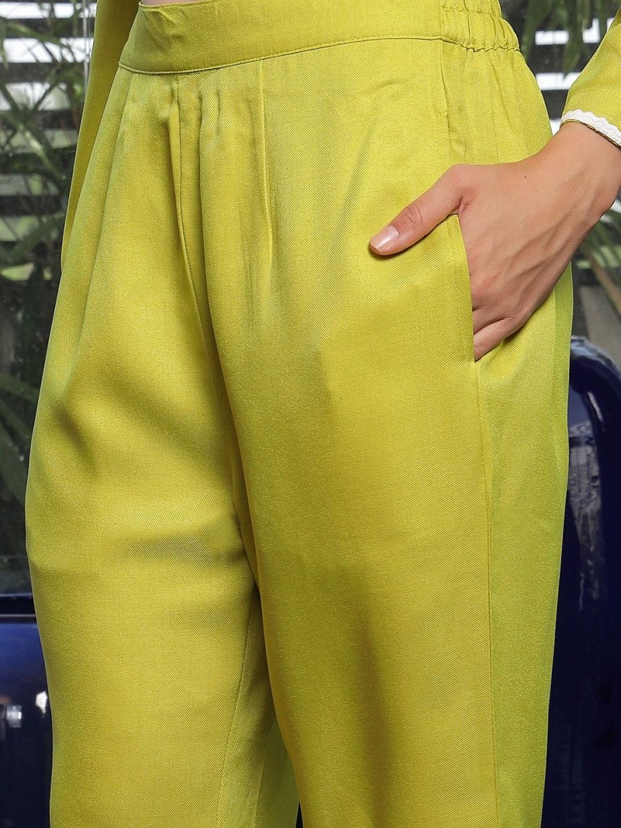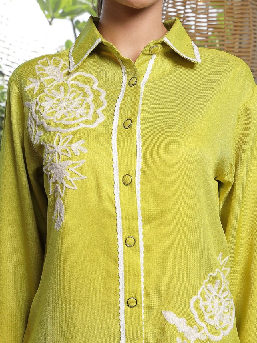 Shirt Collar Embroidered Cotton Shirt With Trousers Co-Ords Set lime-green