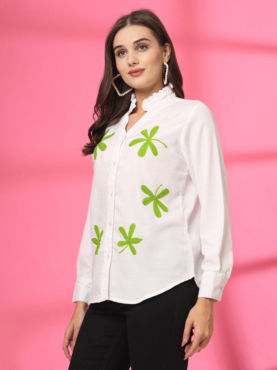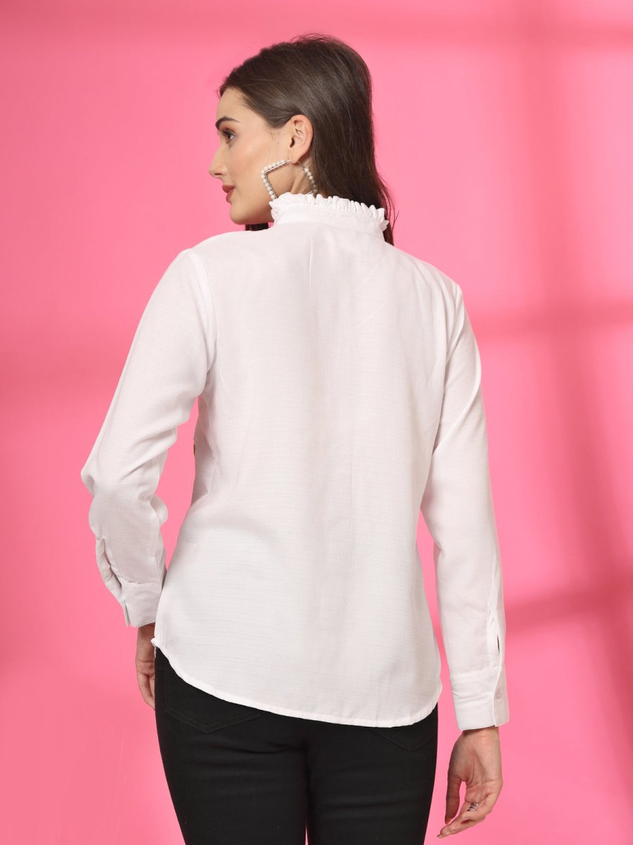 White Solid Casual Top
