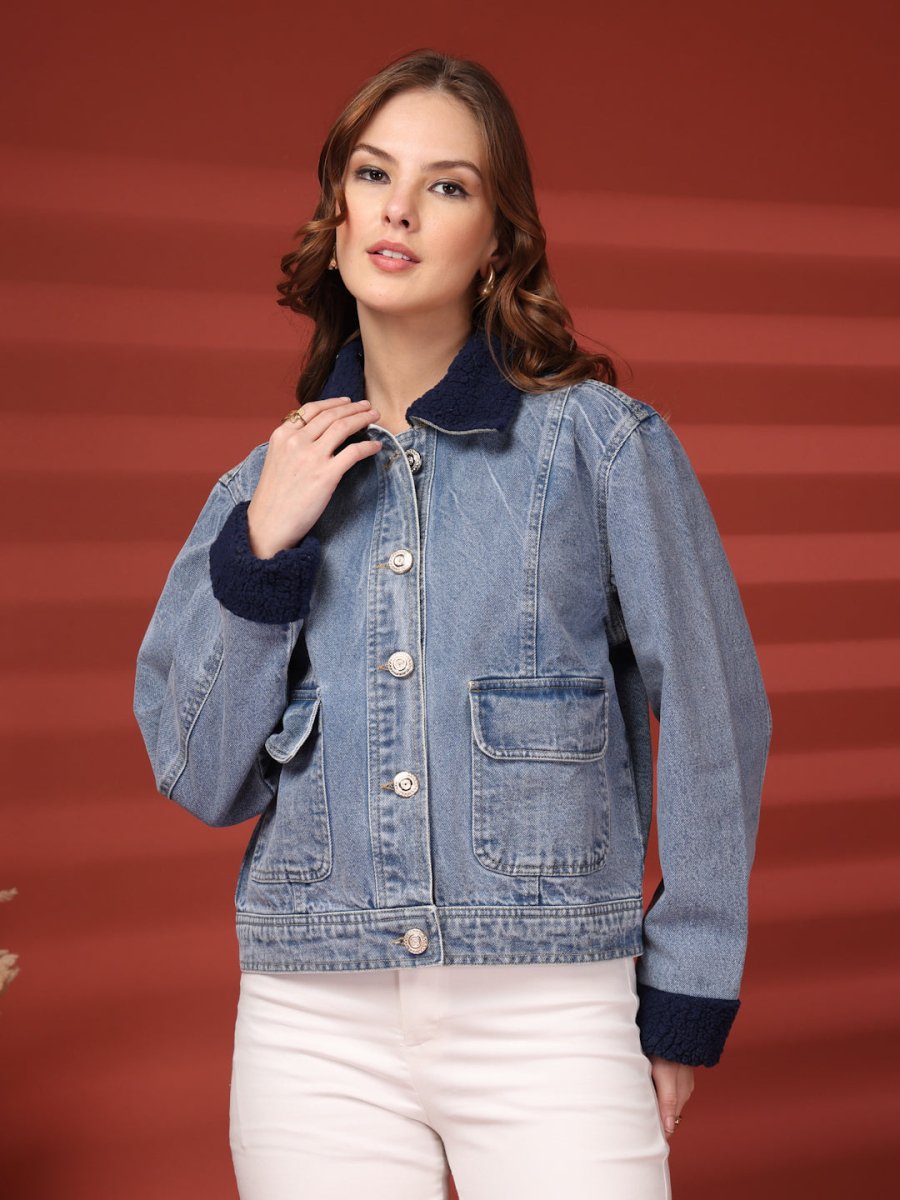 Women Front Open Denim Jacket
