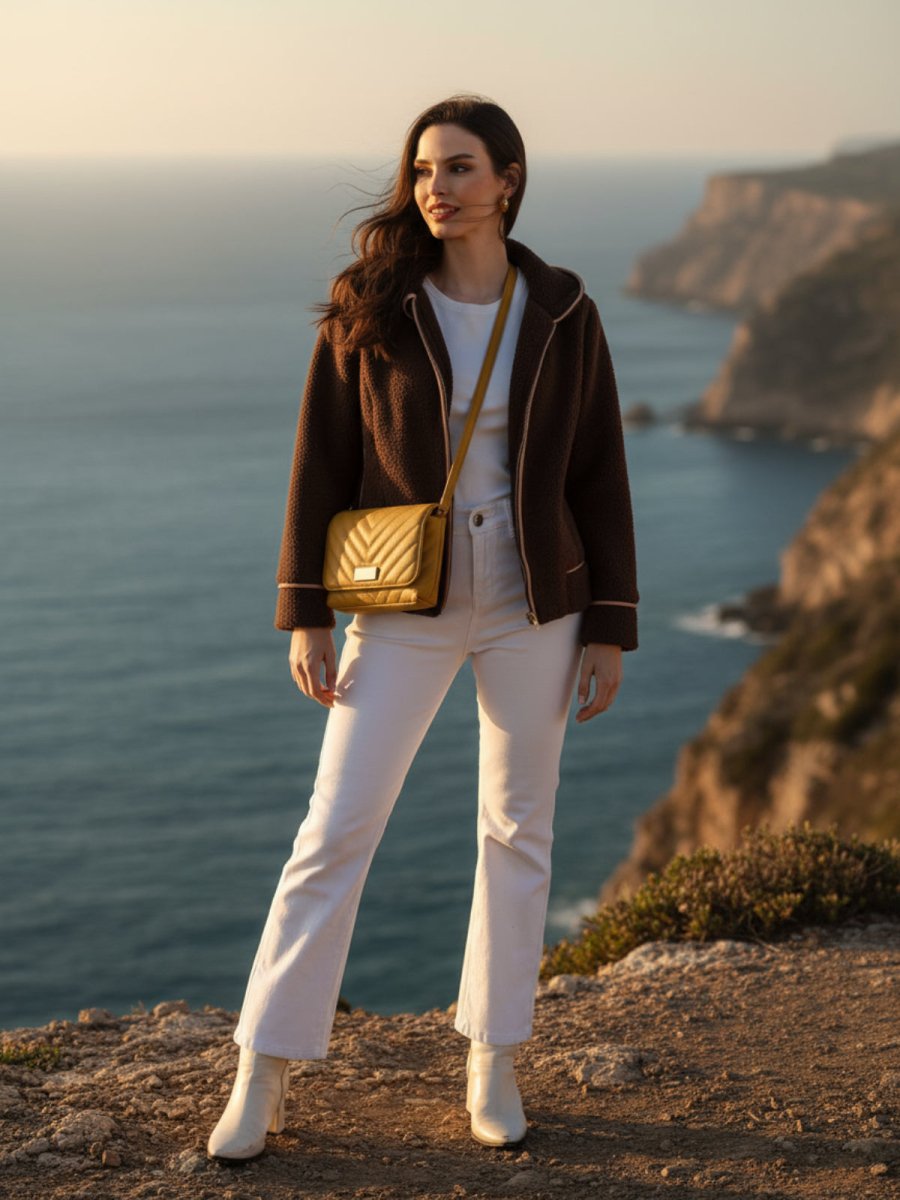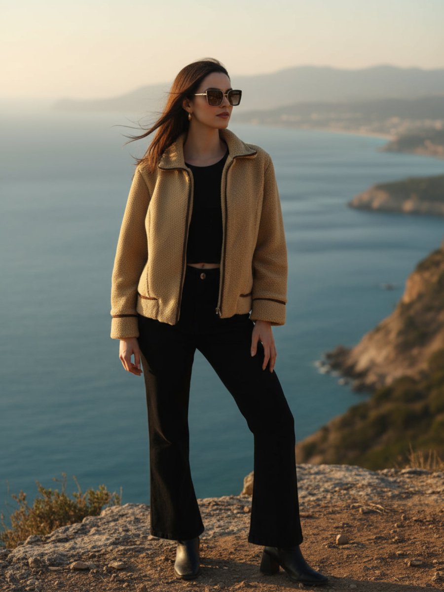 Beige Women Open Front Jacket