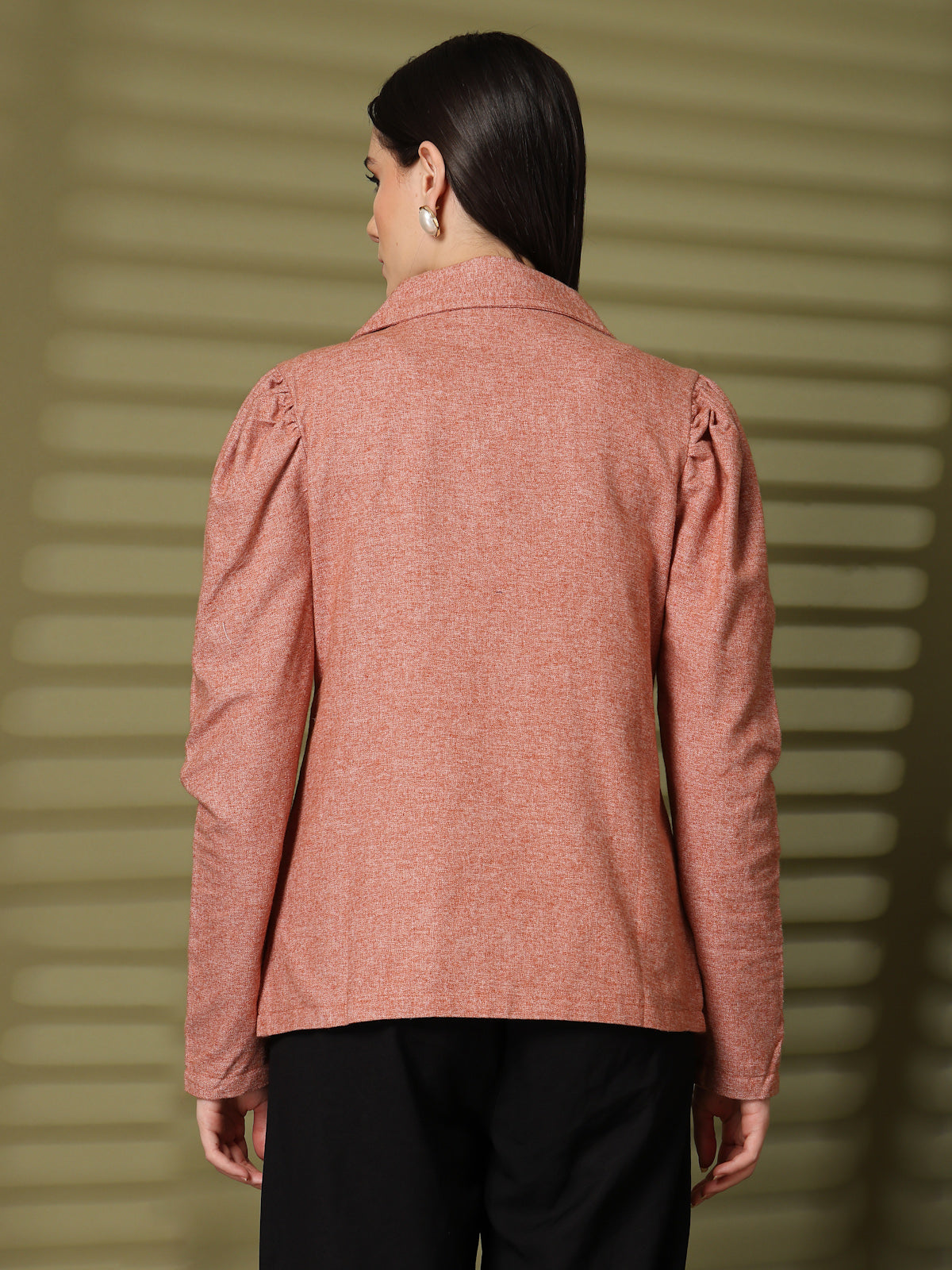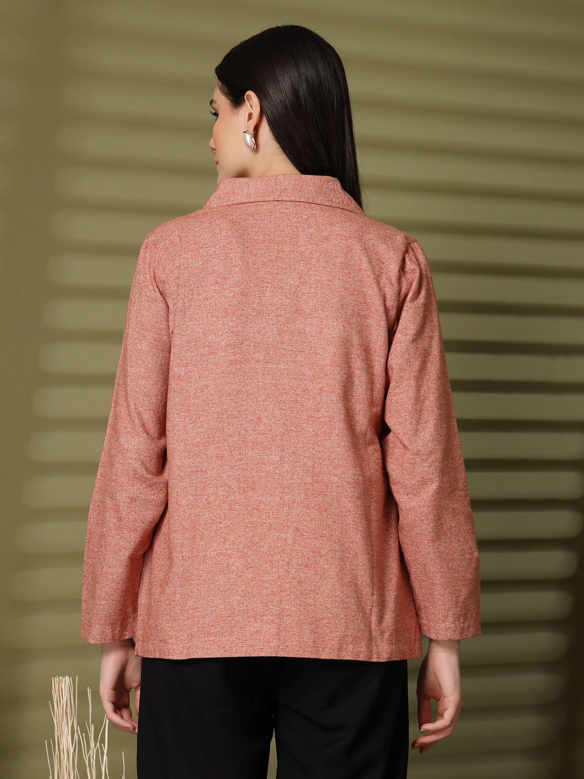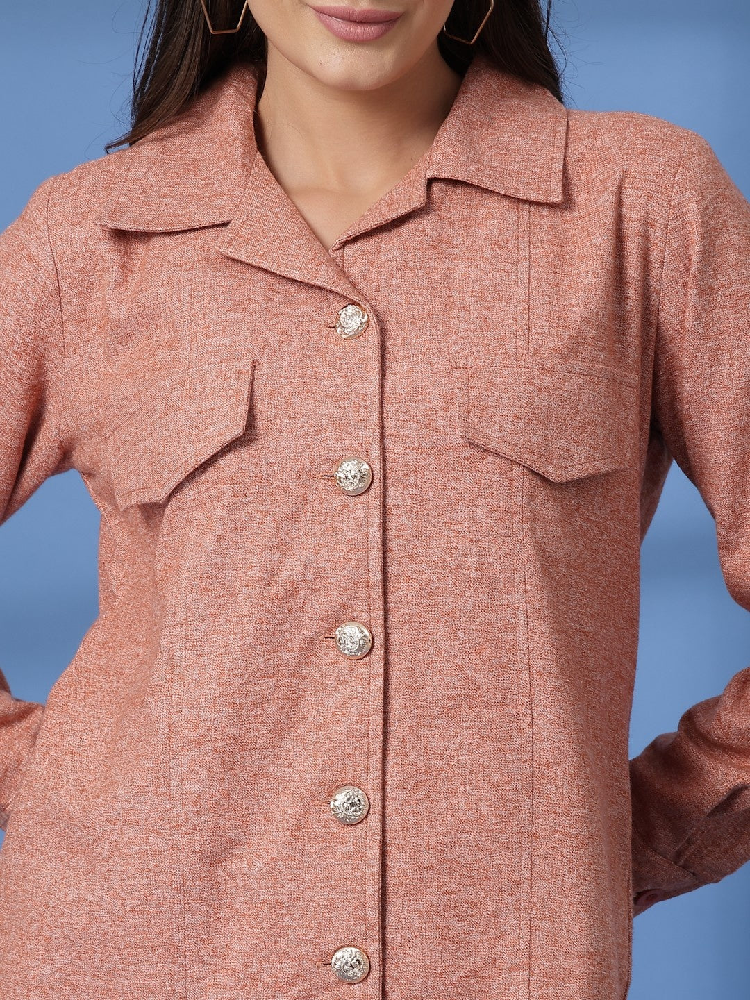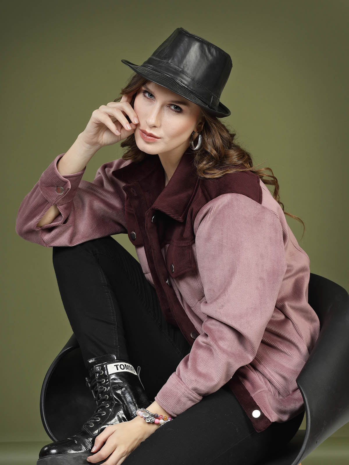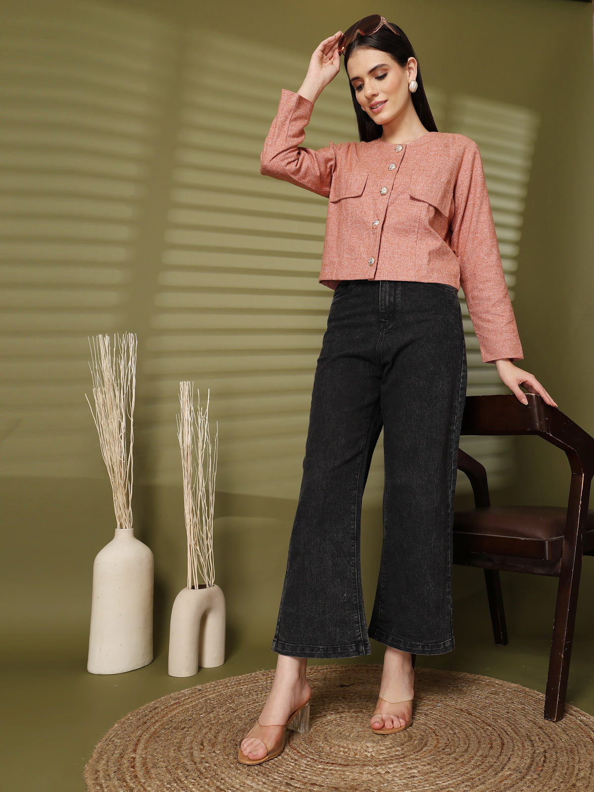 Solid Pink Self Design Spread Collar Bomber Jacket
