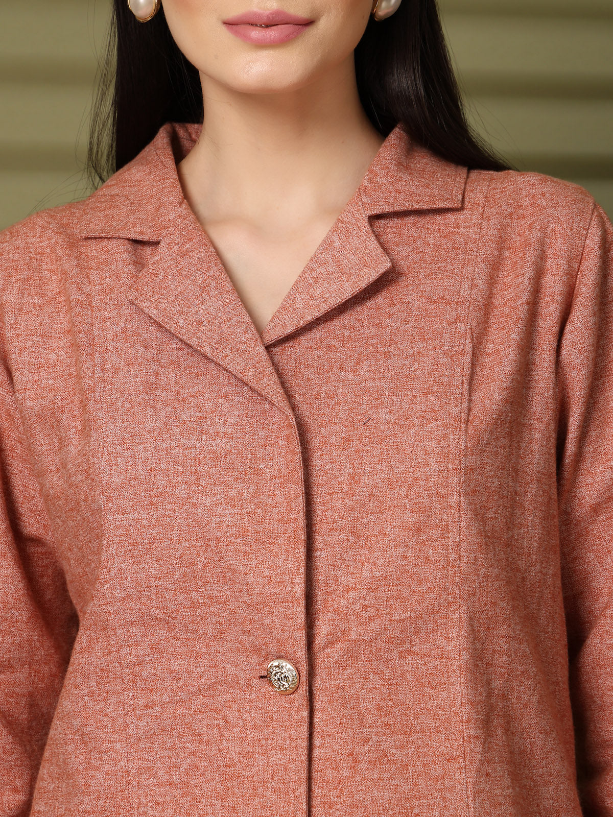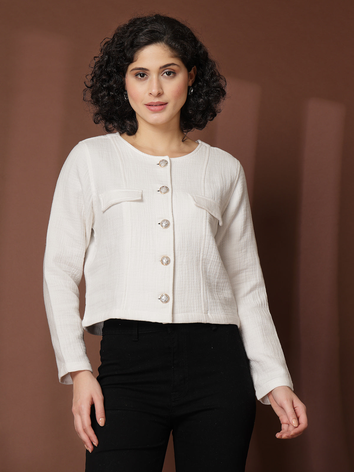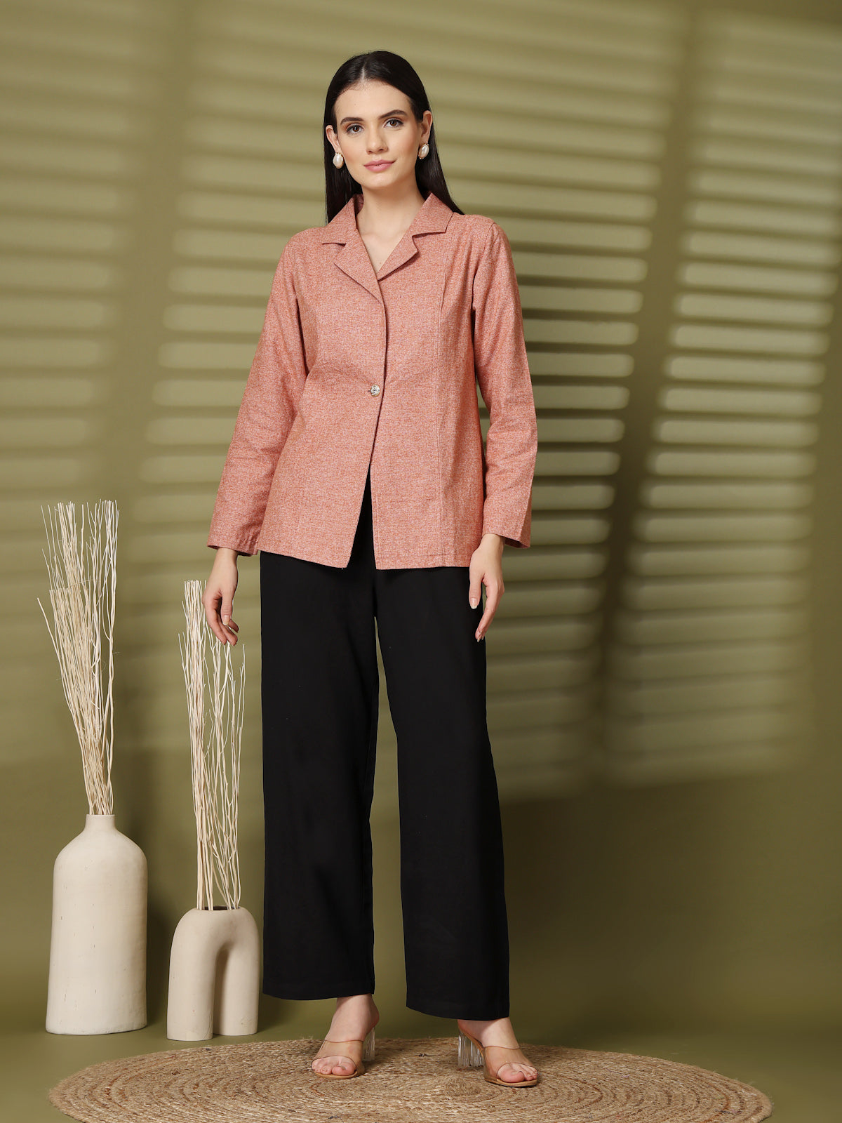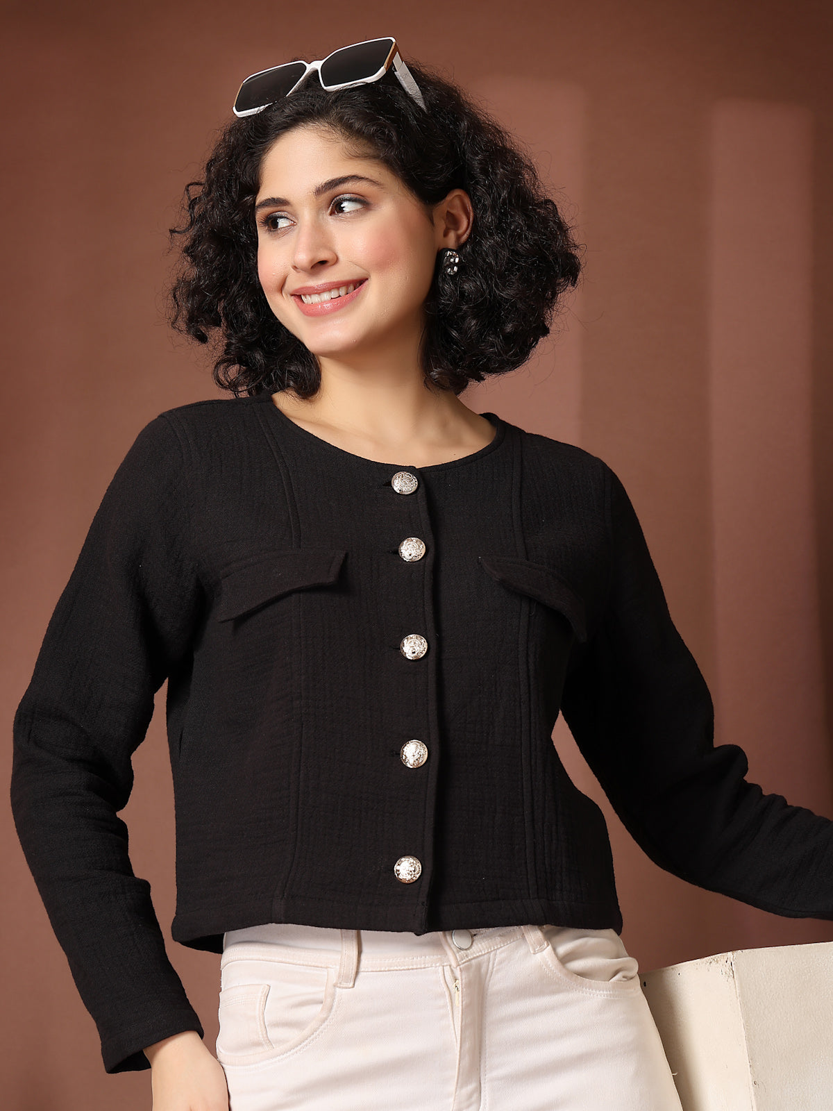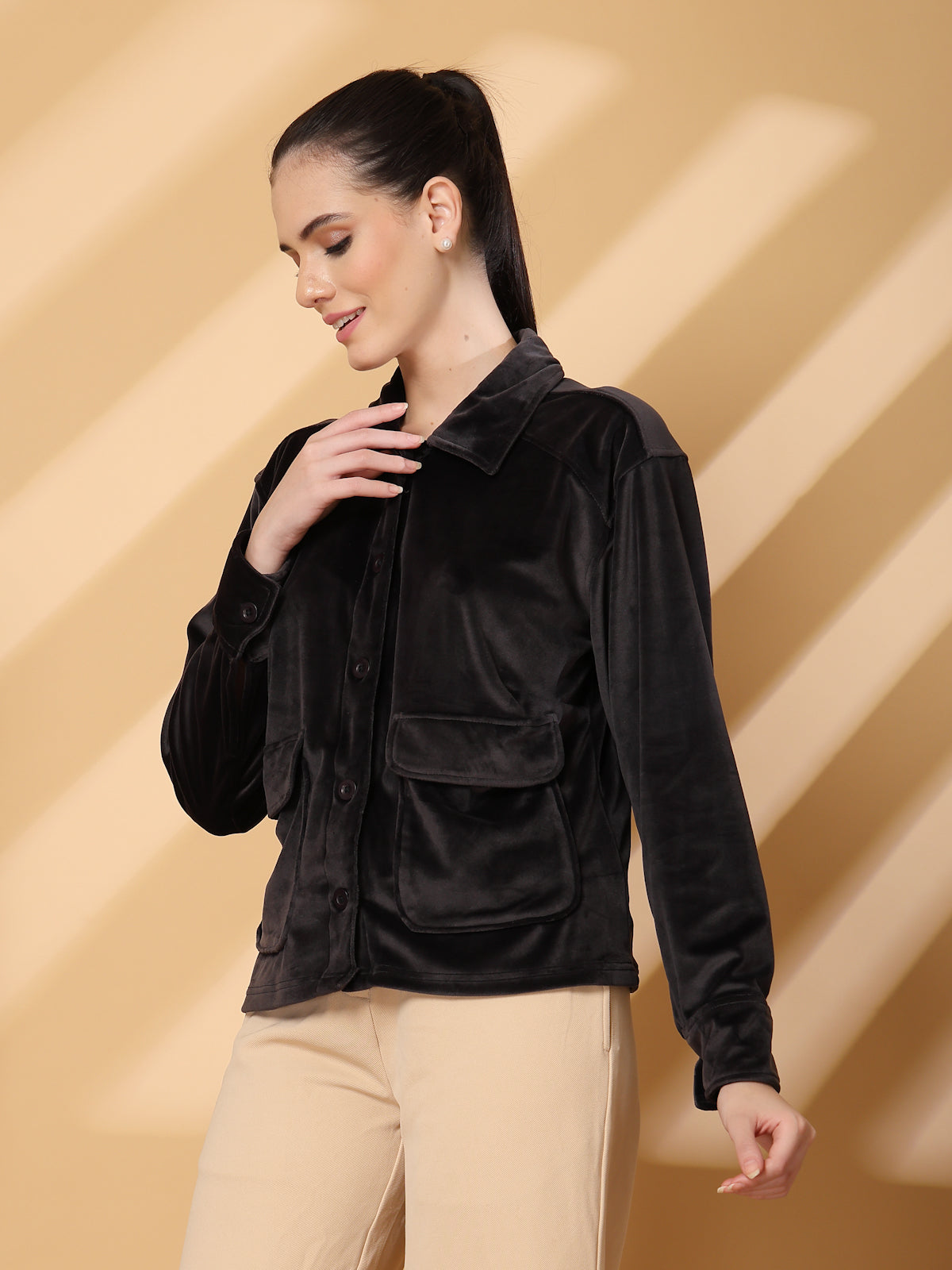 Solid Pink Self Design Spread Collar Bomber Jacket