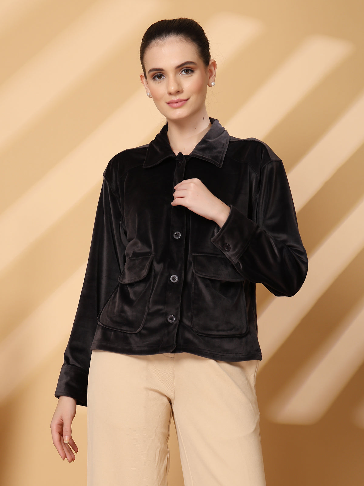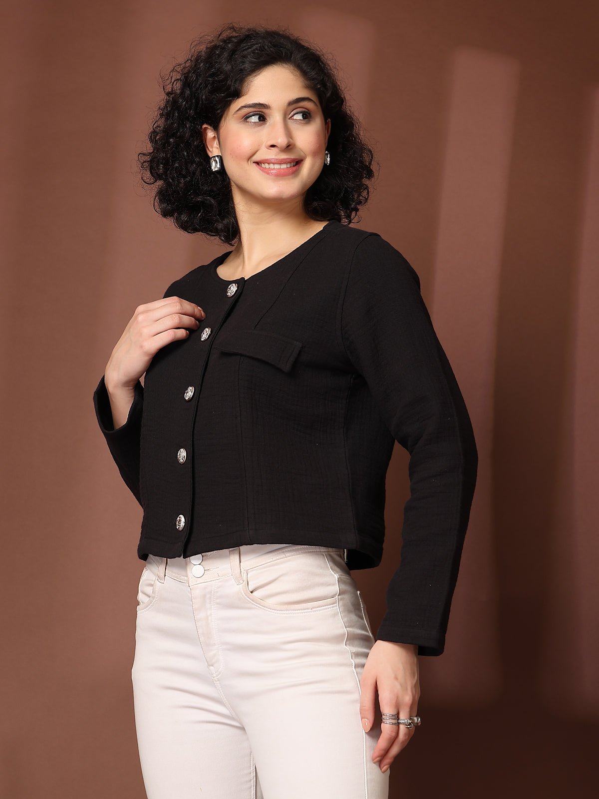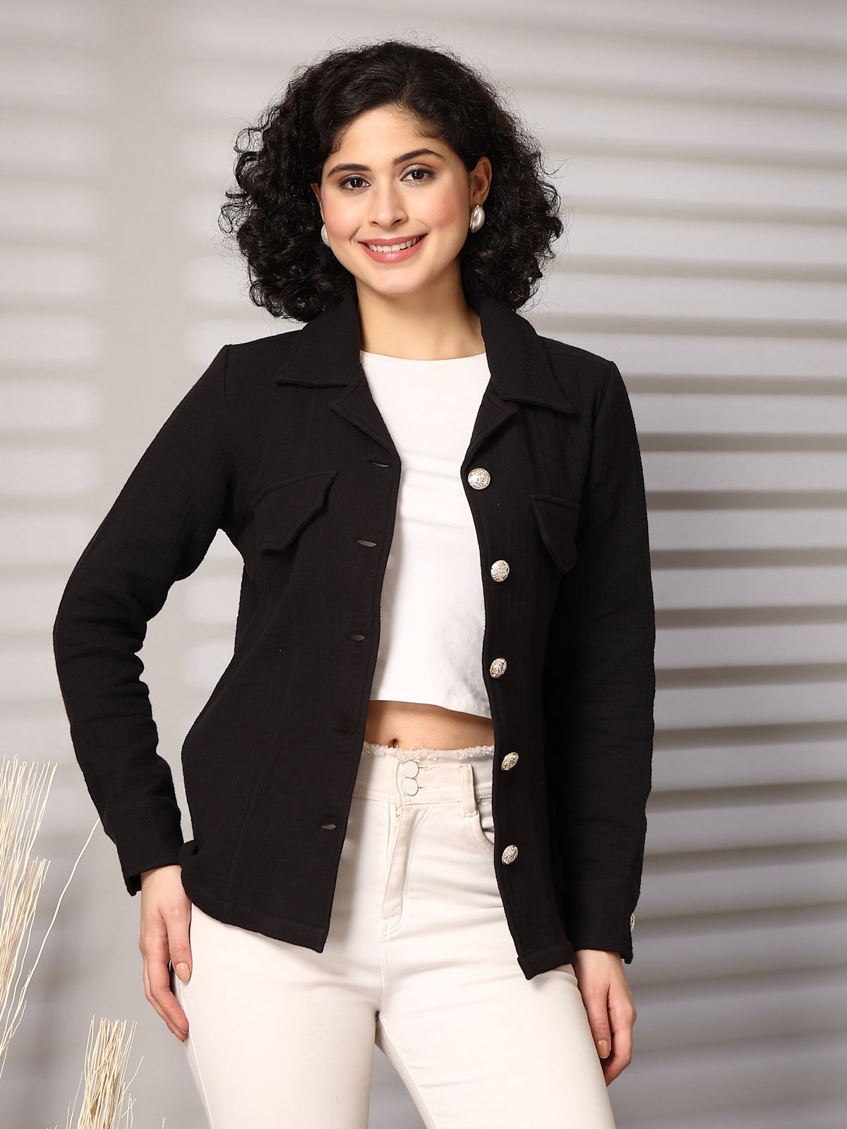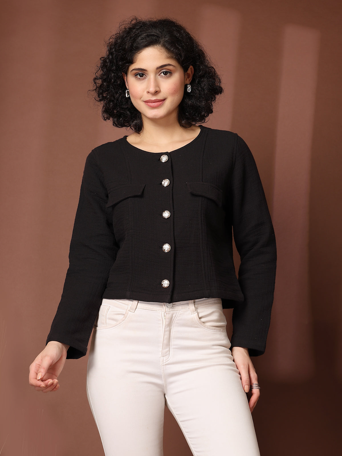Solid Pink Self Design Spread Collar Bomber Jacket