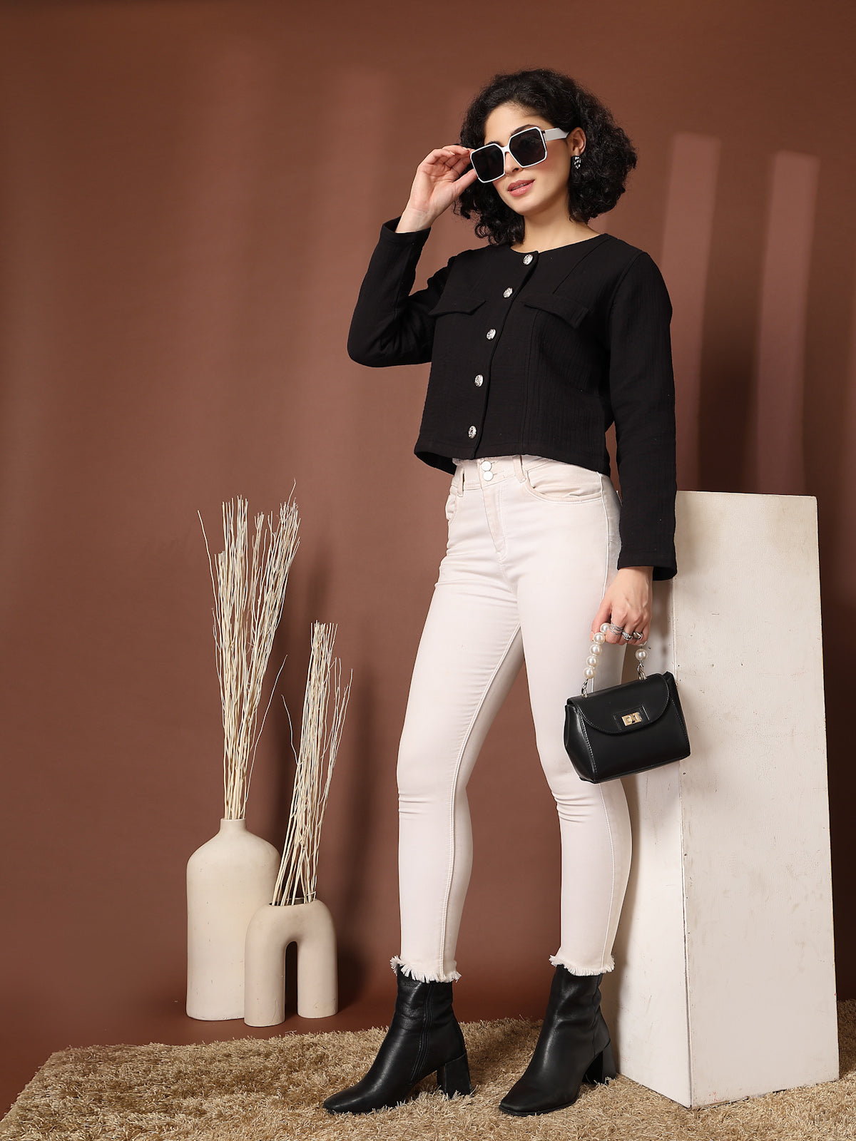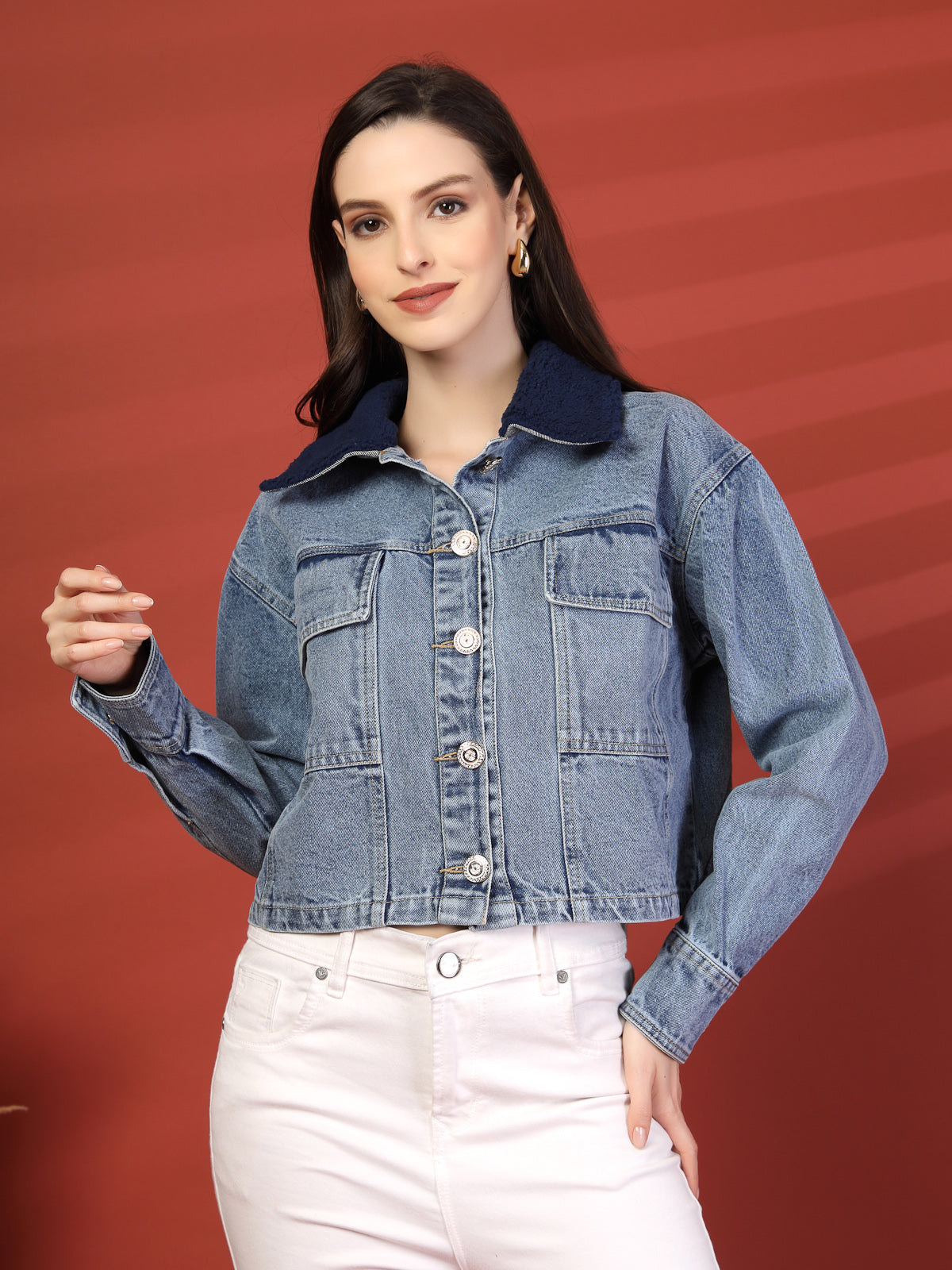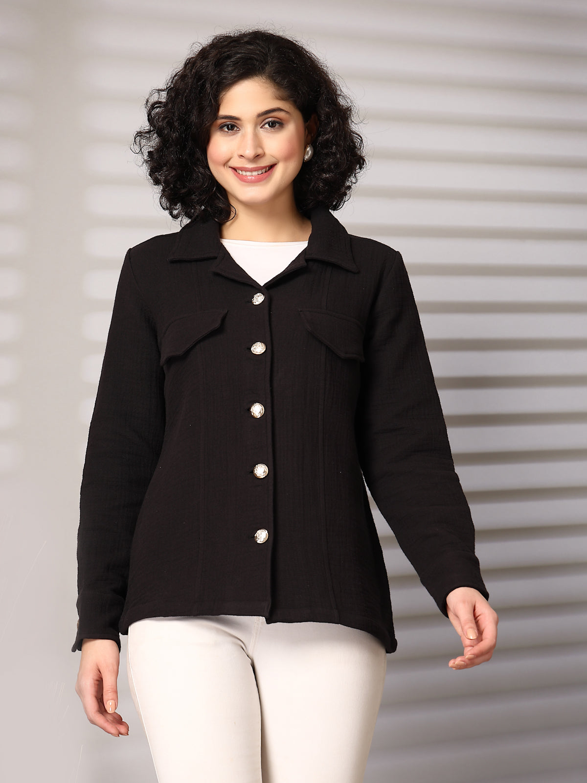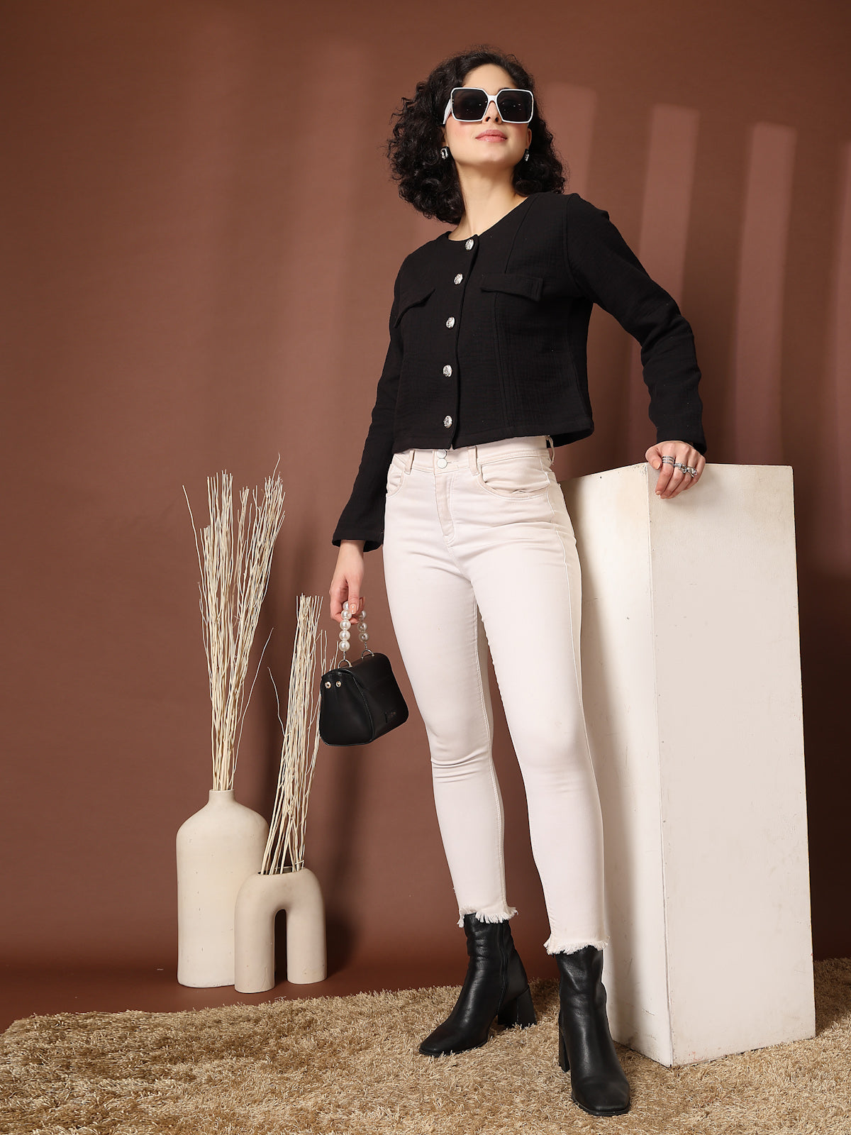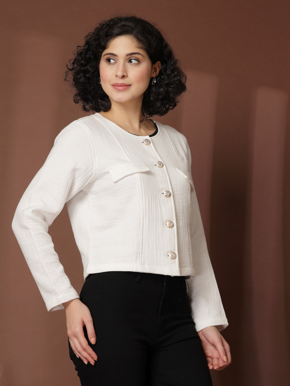 Solid Pink Self Design Spread Collar Bomber Jacket