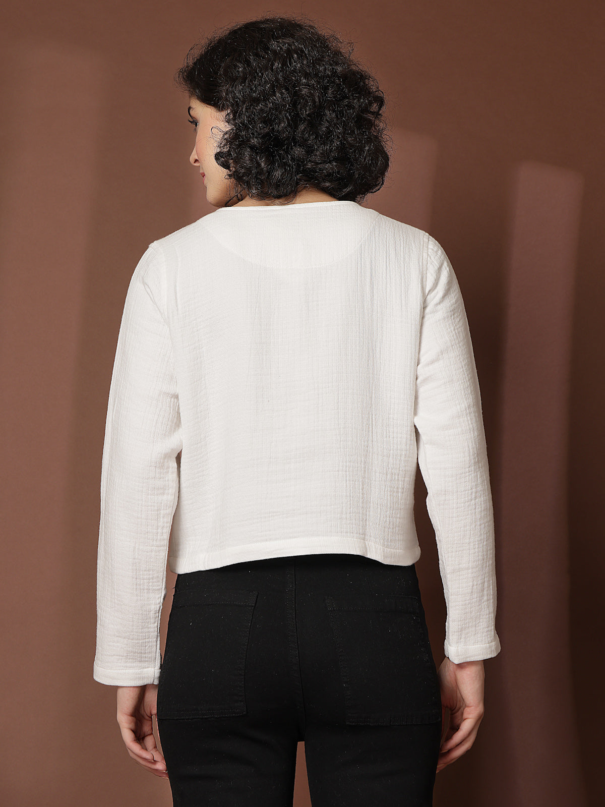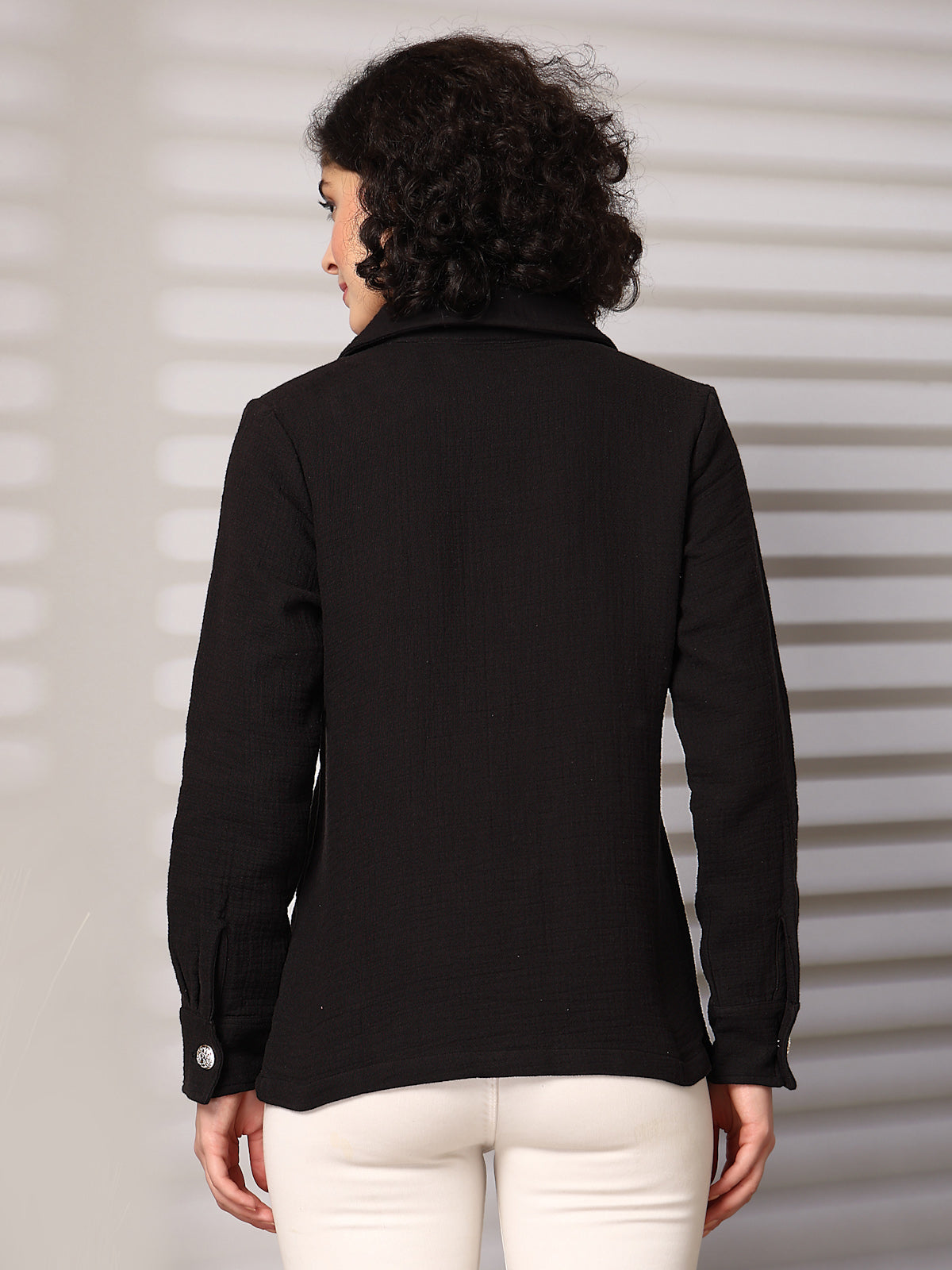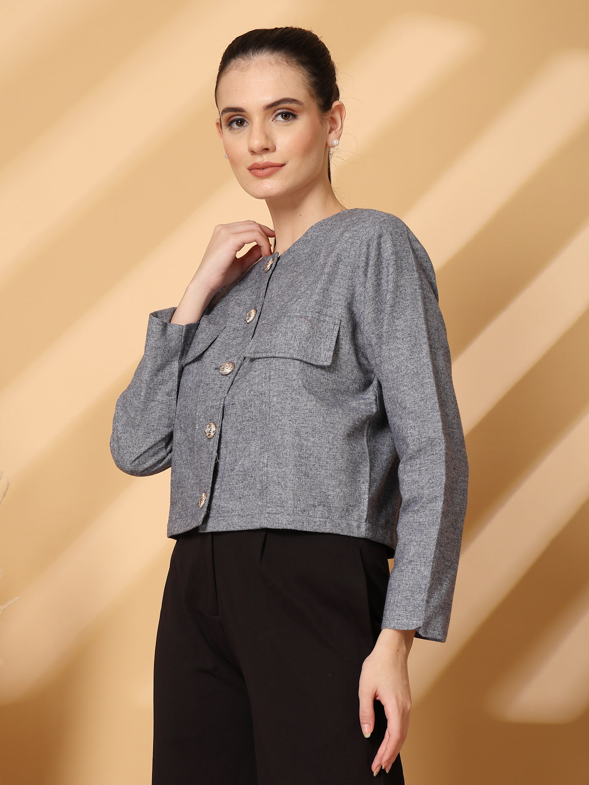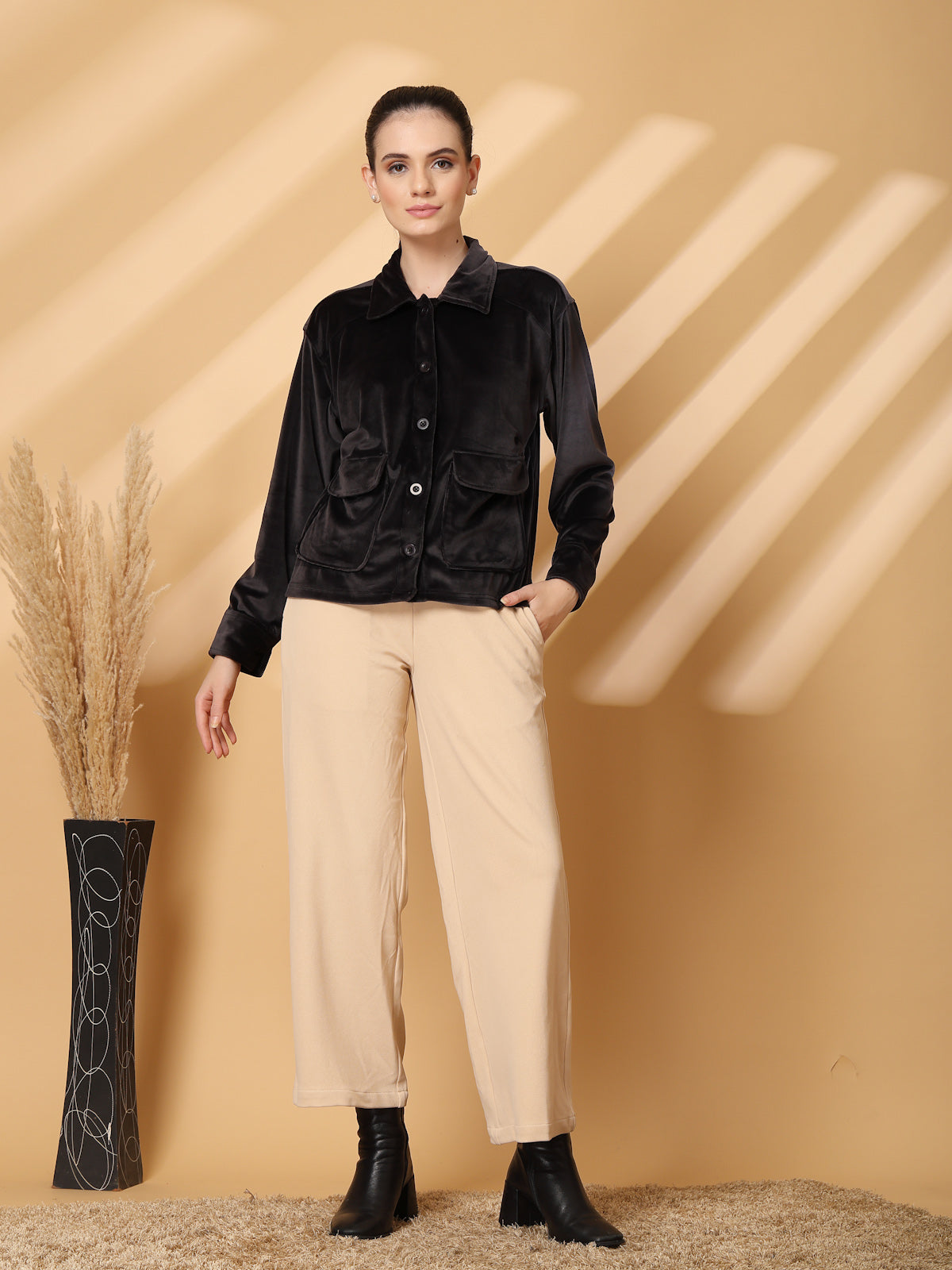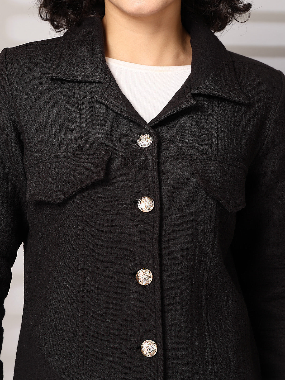Solid Pink Self Design Spread Collar Bomber Jacket