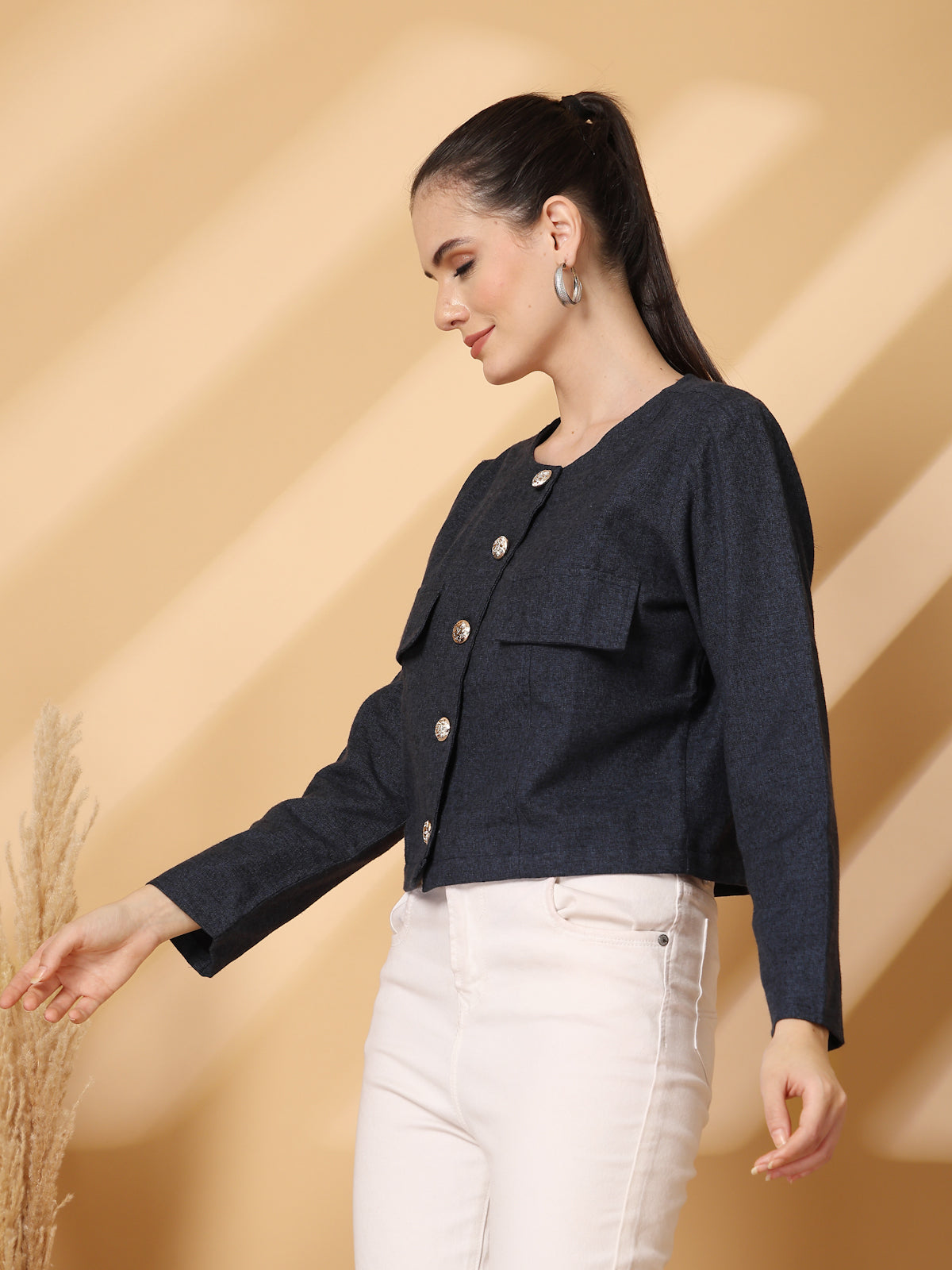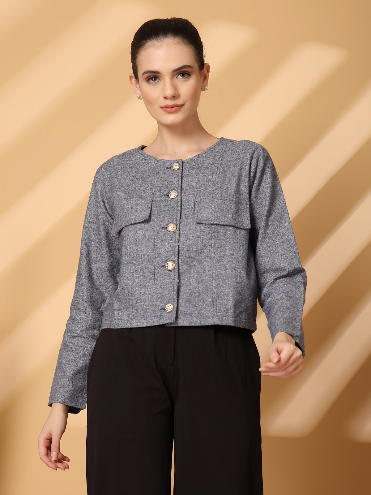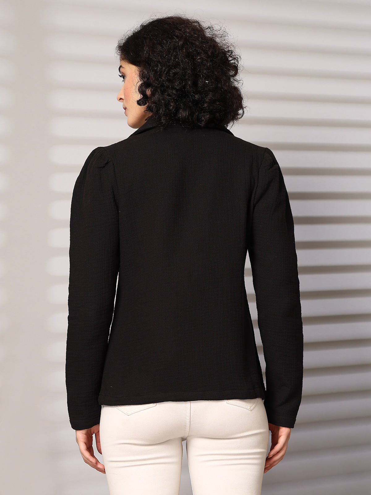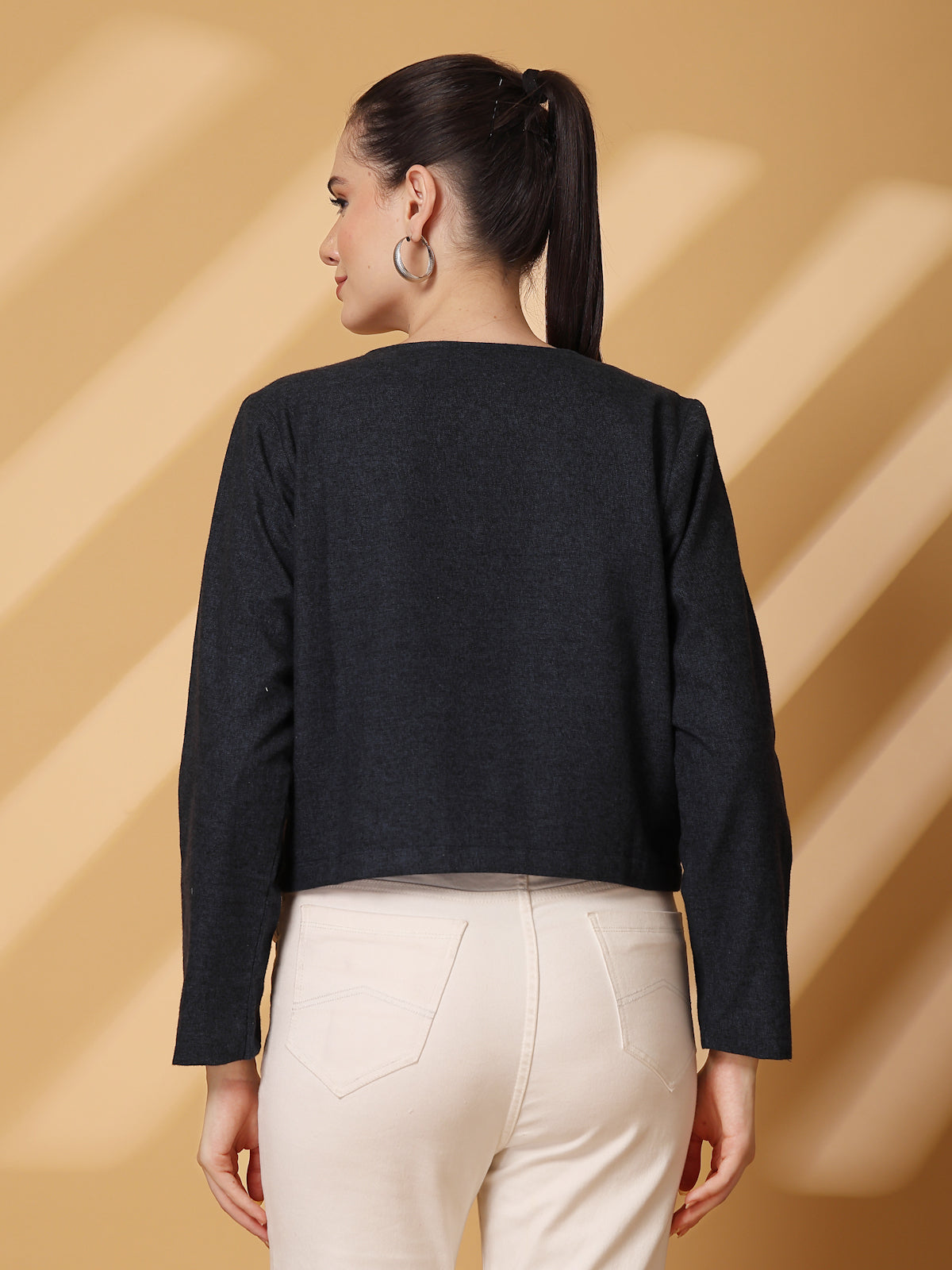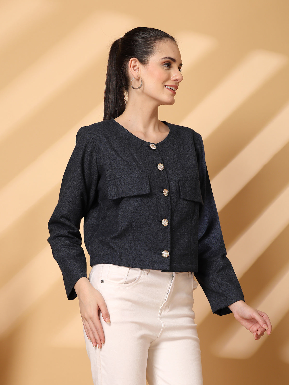 Solid Pink Self Design Spread Collar Bomber Jacket