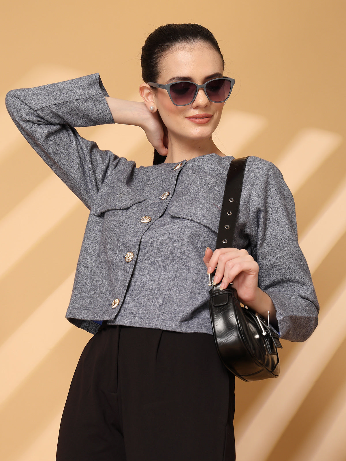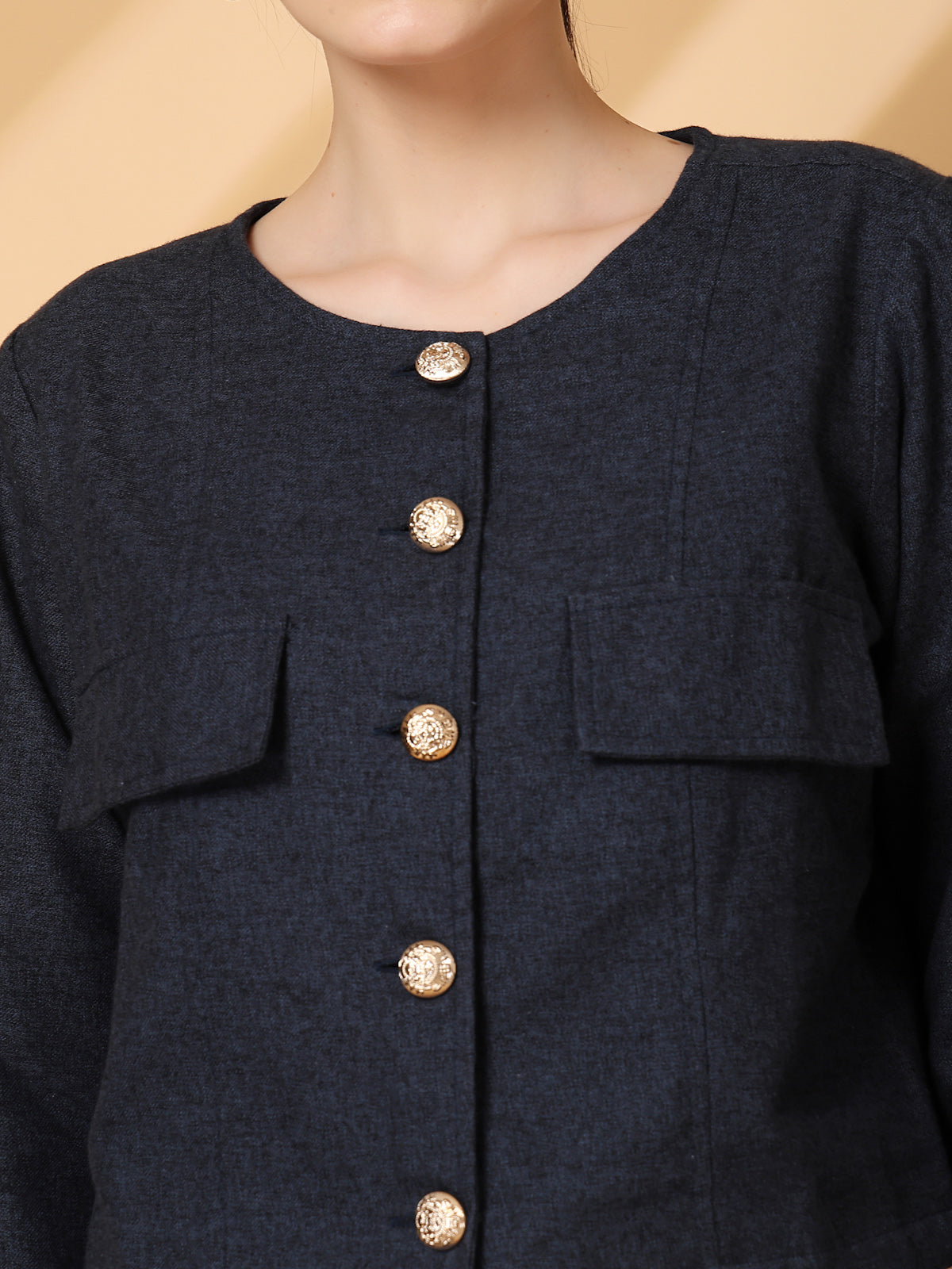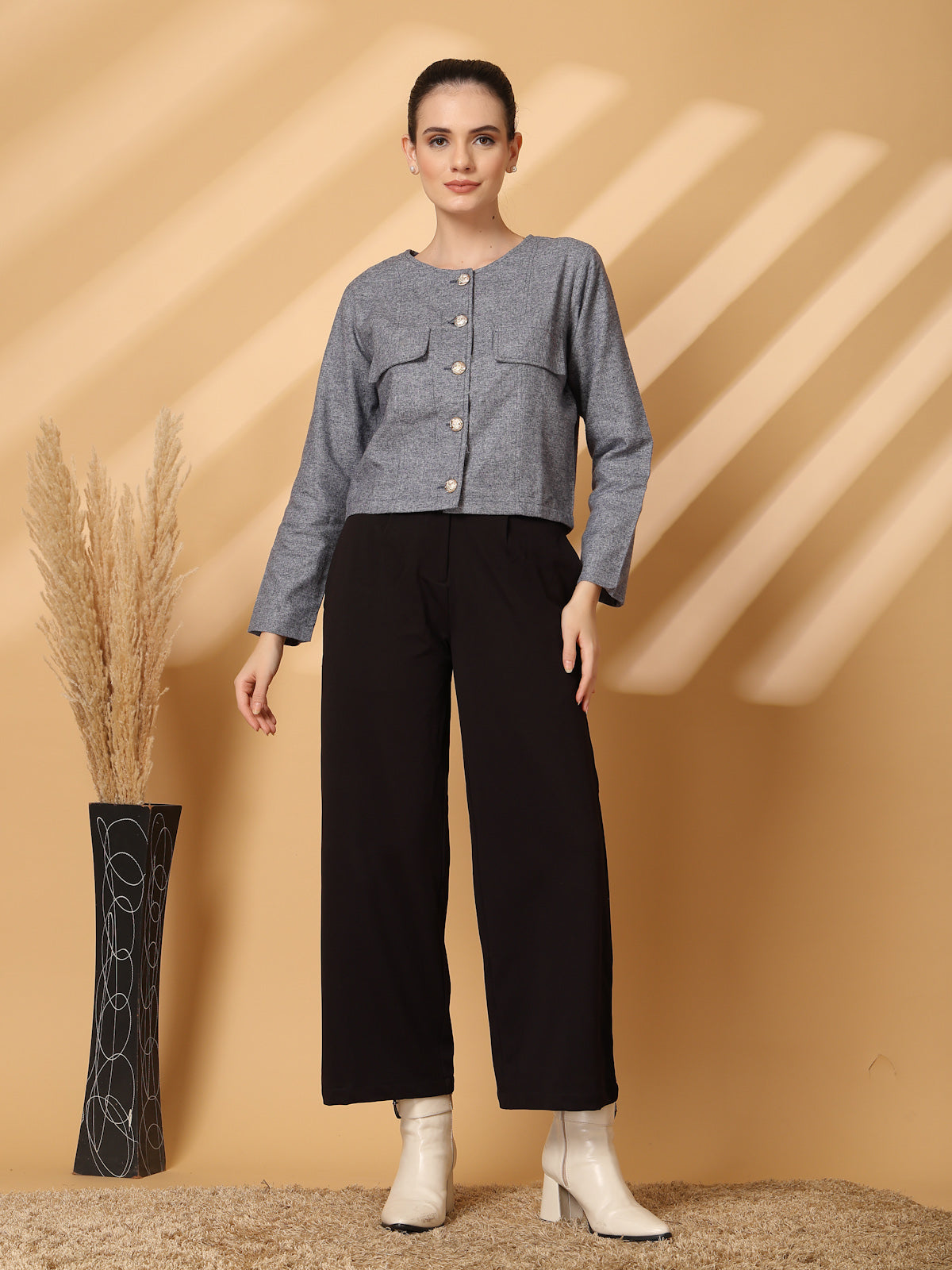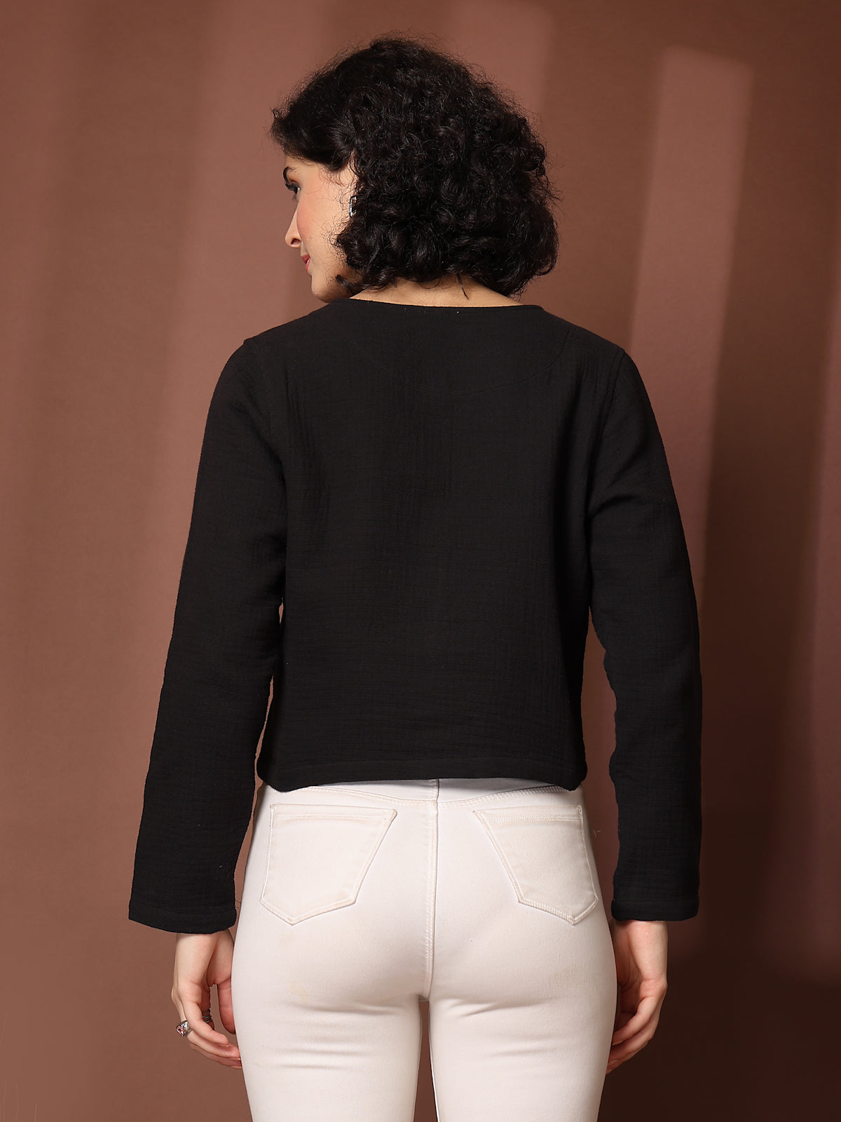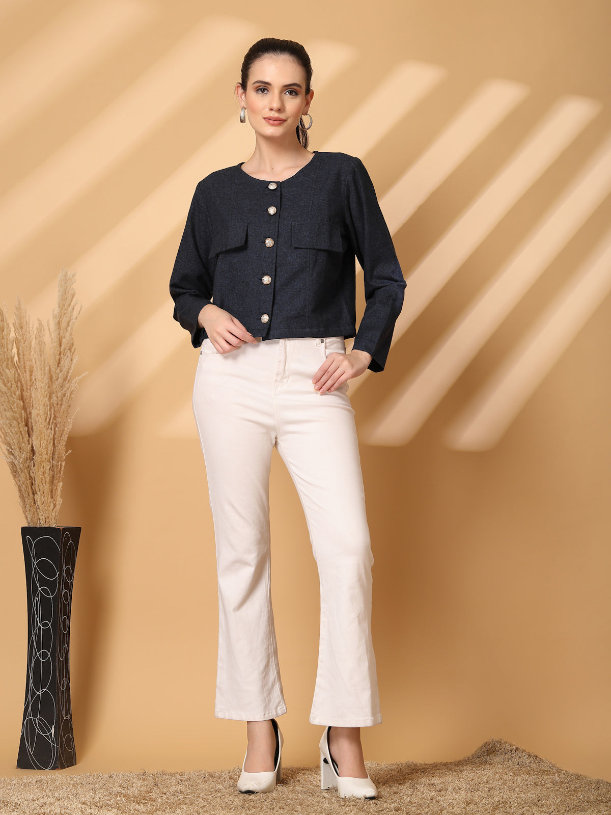Solid Pink Self Design Spread Collar Bomber Jacket