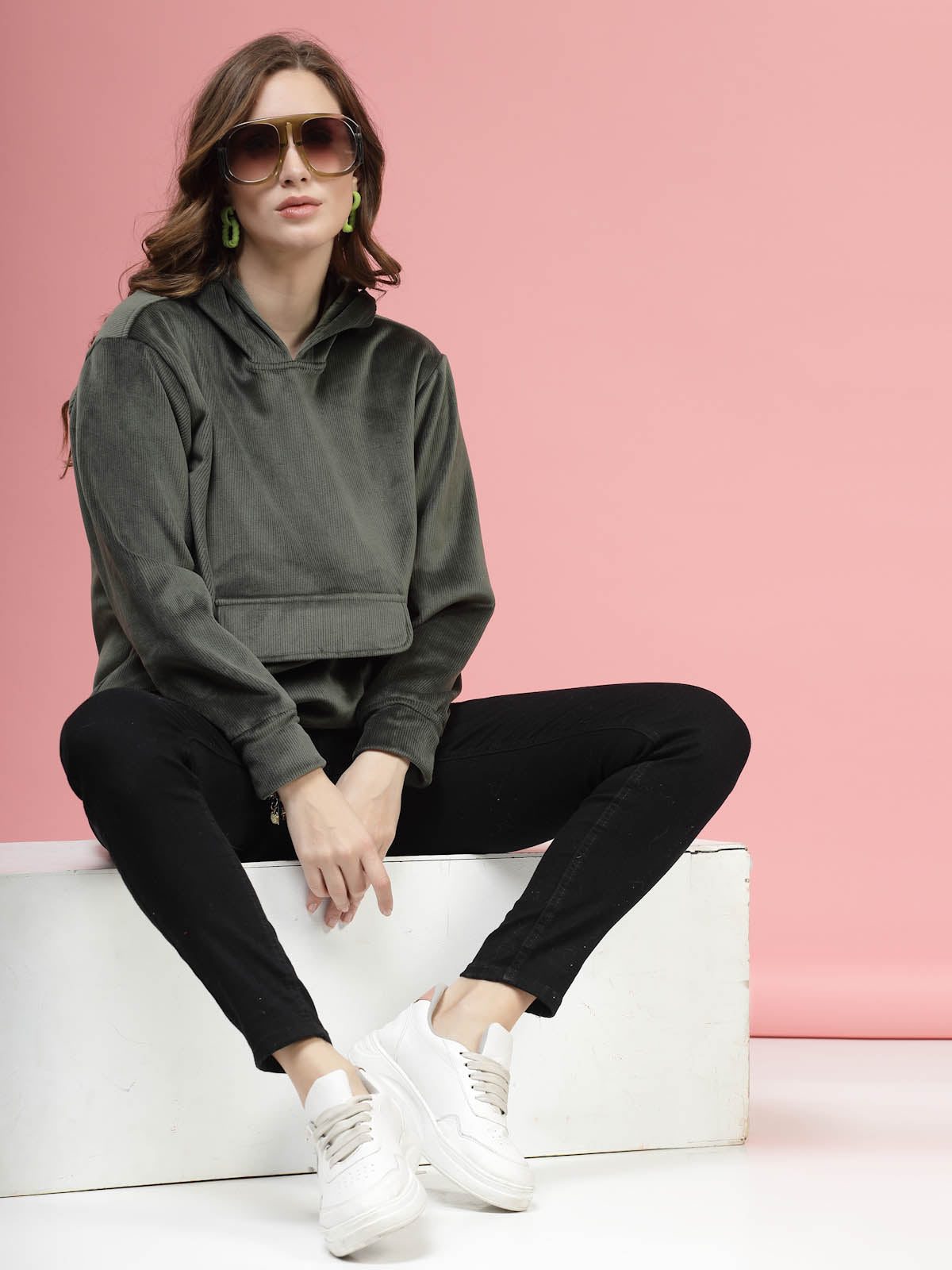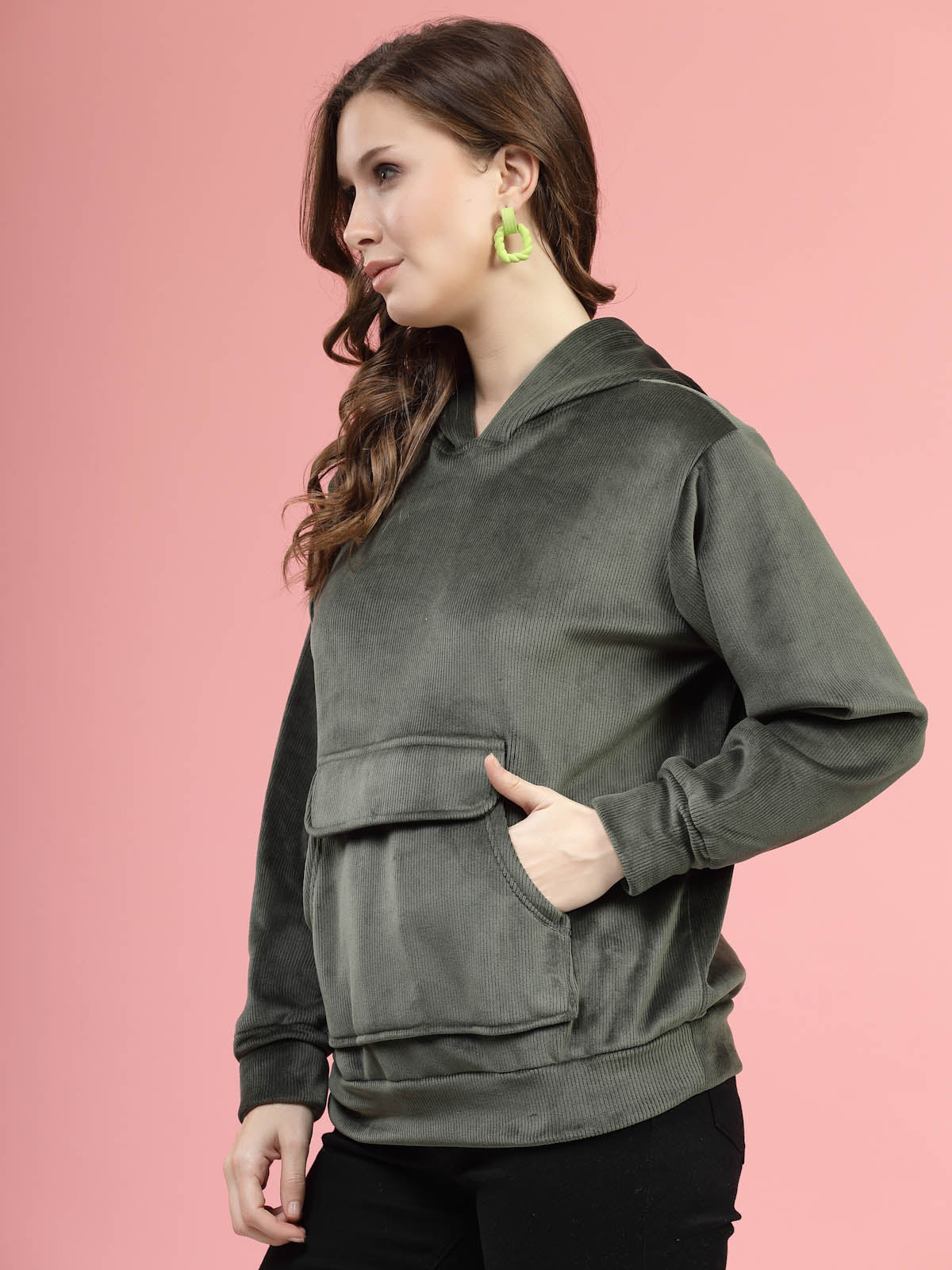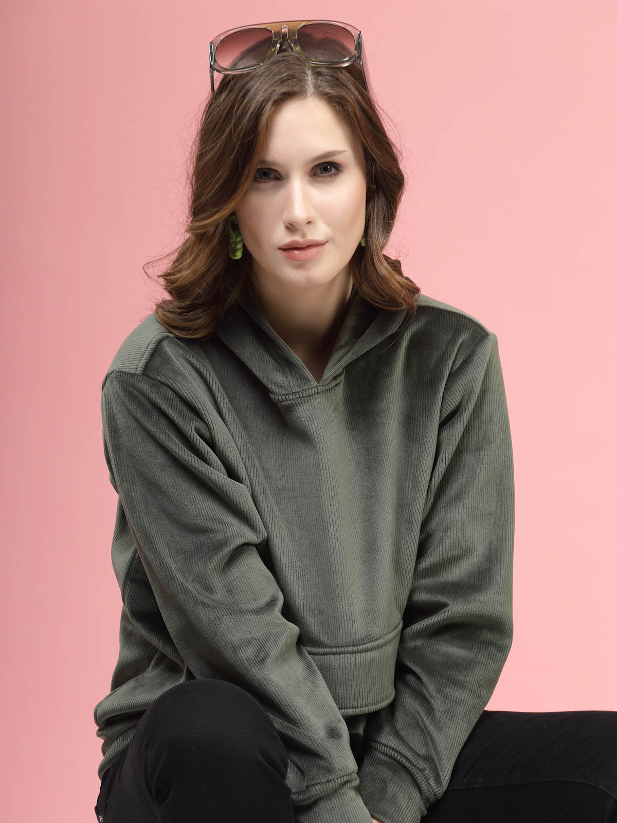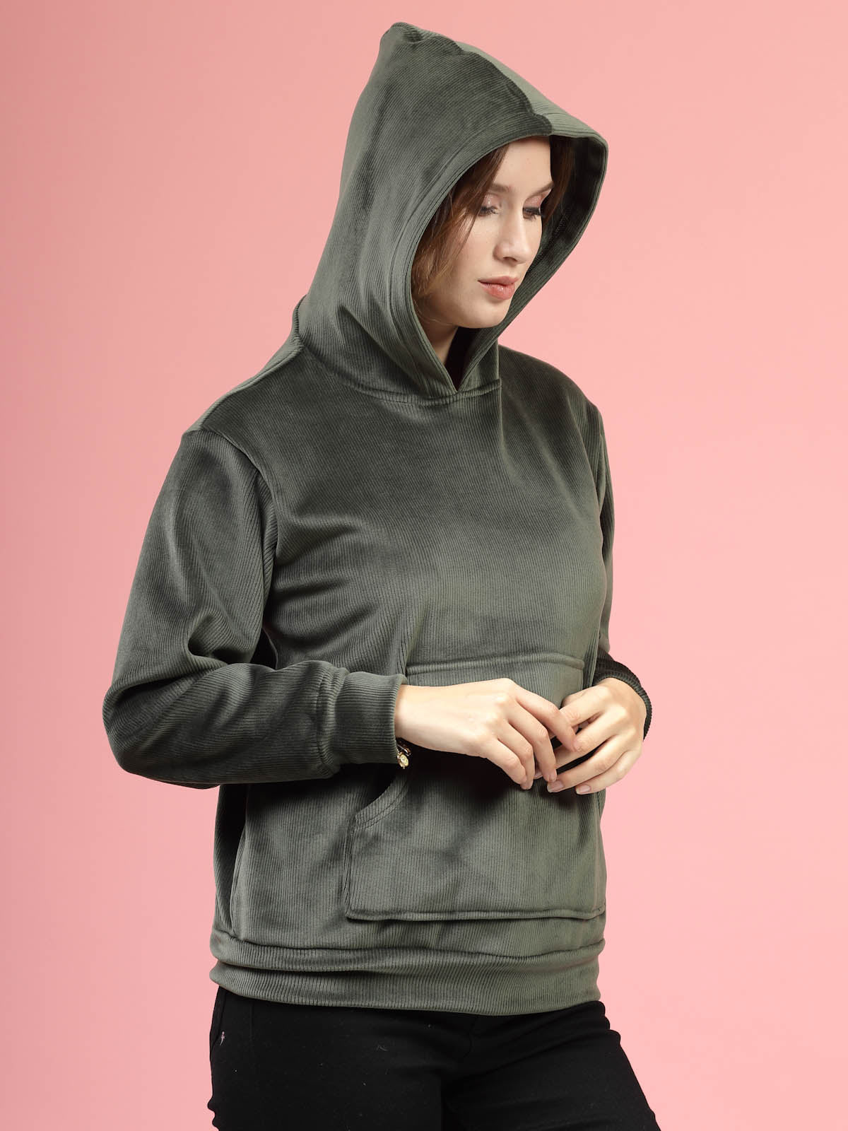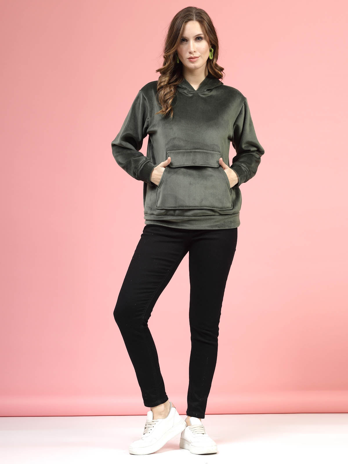 Olive Hooded Long Sleeves Pullover Sweatshirt