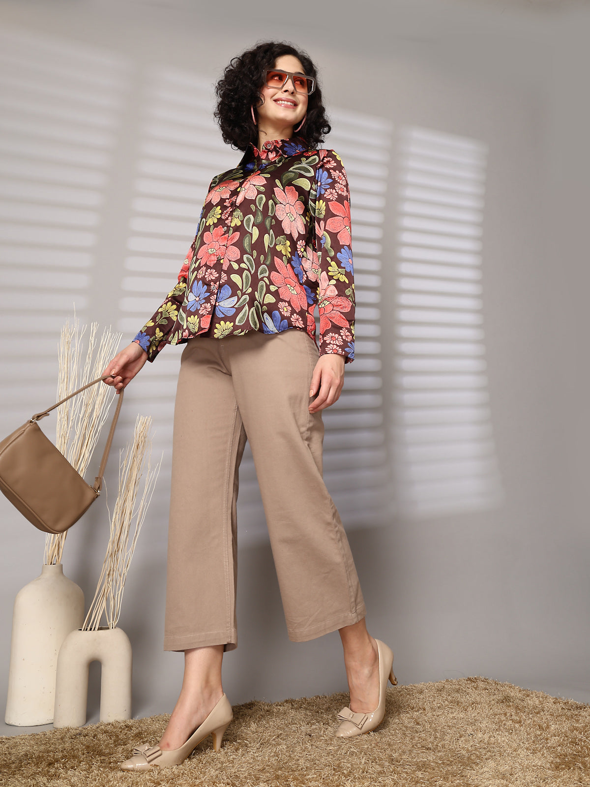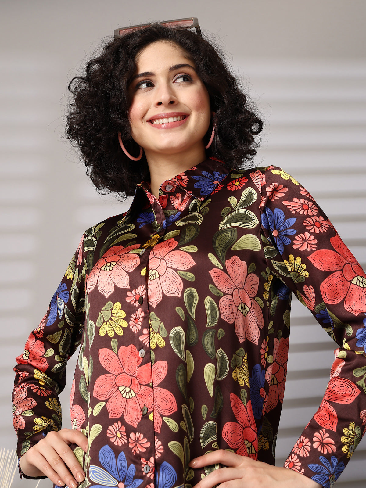 Black floral printed opaque Casual shirt ,has a spread collar, button and loop, no pocket, long regular sleeves, straight hem. -Dress to impress with this stylish casual shirt in a classic black floral print. -Featuring a spread collar, button and loop closure, and no pocket, this shirt is designed for a sleek and streamlined look. -The long regular sleeves and straight hem add a touch of sophistication, making this shirt perfect for both formal and casual occasions. -Made from a high-quality, opaque fabric, this shirt is not only fashionable but also durable and comfortable. -Elevate your wardrobe with this versatile and on-trend shirt.
