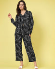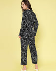 Black & Grey Abstract Printed Shirt Collar Shirt With Trousers