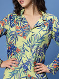 Yellow blue and orange printed shirt, has shirt collar, full sleeves, full placket button closure and regular waist hem