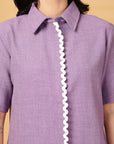 Purple Solid Cotton Shirt With Sord Co-Ords