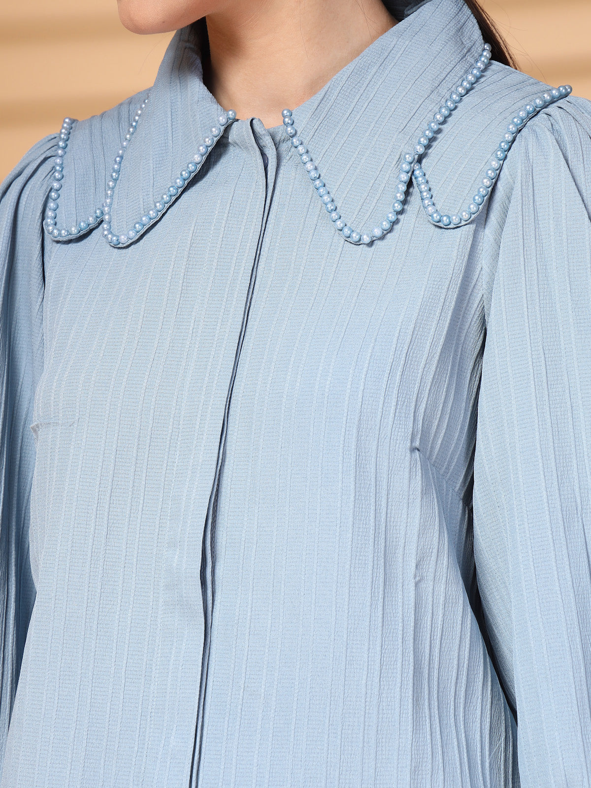 Sea green solid opaque Casual shirt ,has a above the keyboard collar, button placket, na pocket, long regular sleeves, straight hem